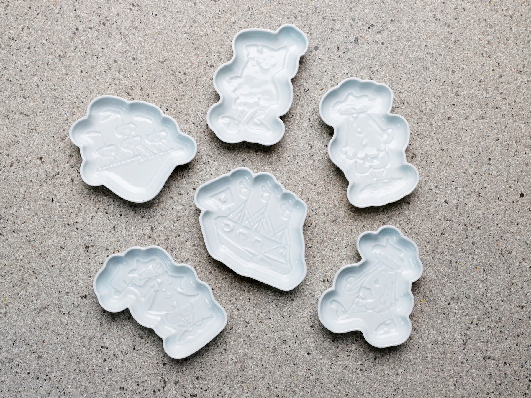 異人や船といった代表的なモチーフを、彫りの深さによる陰影で表現。醤油などを注ぐことで濃淡が際立ち、絵柄が浮かび上がります。
