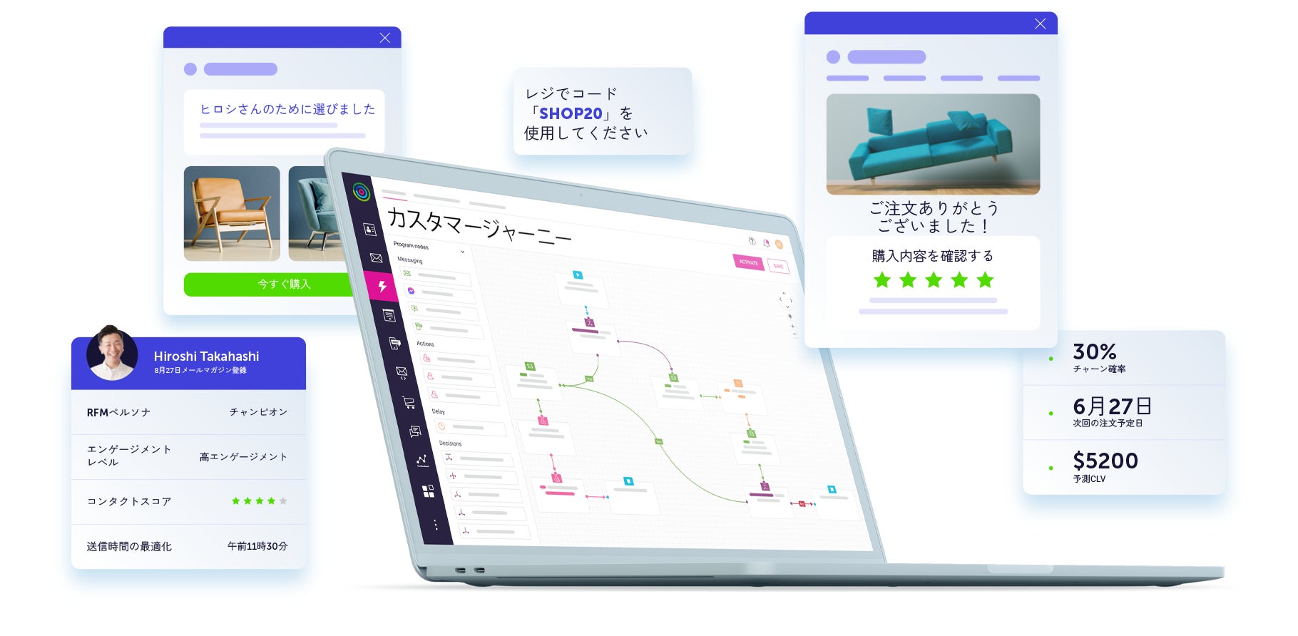 ・カスタマージャーニーを設計し、適切なタイミングで自動施策を実行