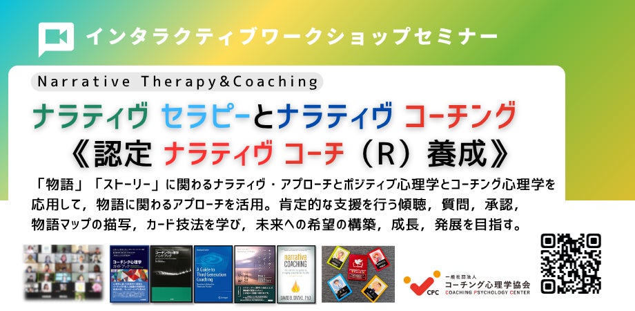 一般社団法人 コーチング心理学協会(本部:東京都港区)が主催し 2026年 5月30日-31日(日)2日間 9:00~ 17:30(2日間・両日),オンライン・ワークショップにて,【ナラティヴ・セラピーとナラティヴ・コーチング基本講座」を開催いたします。