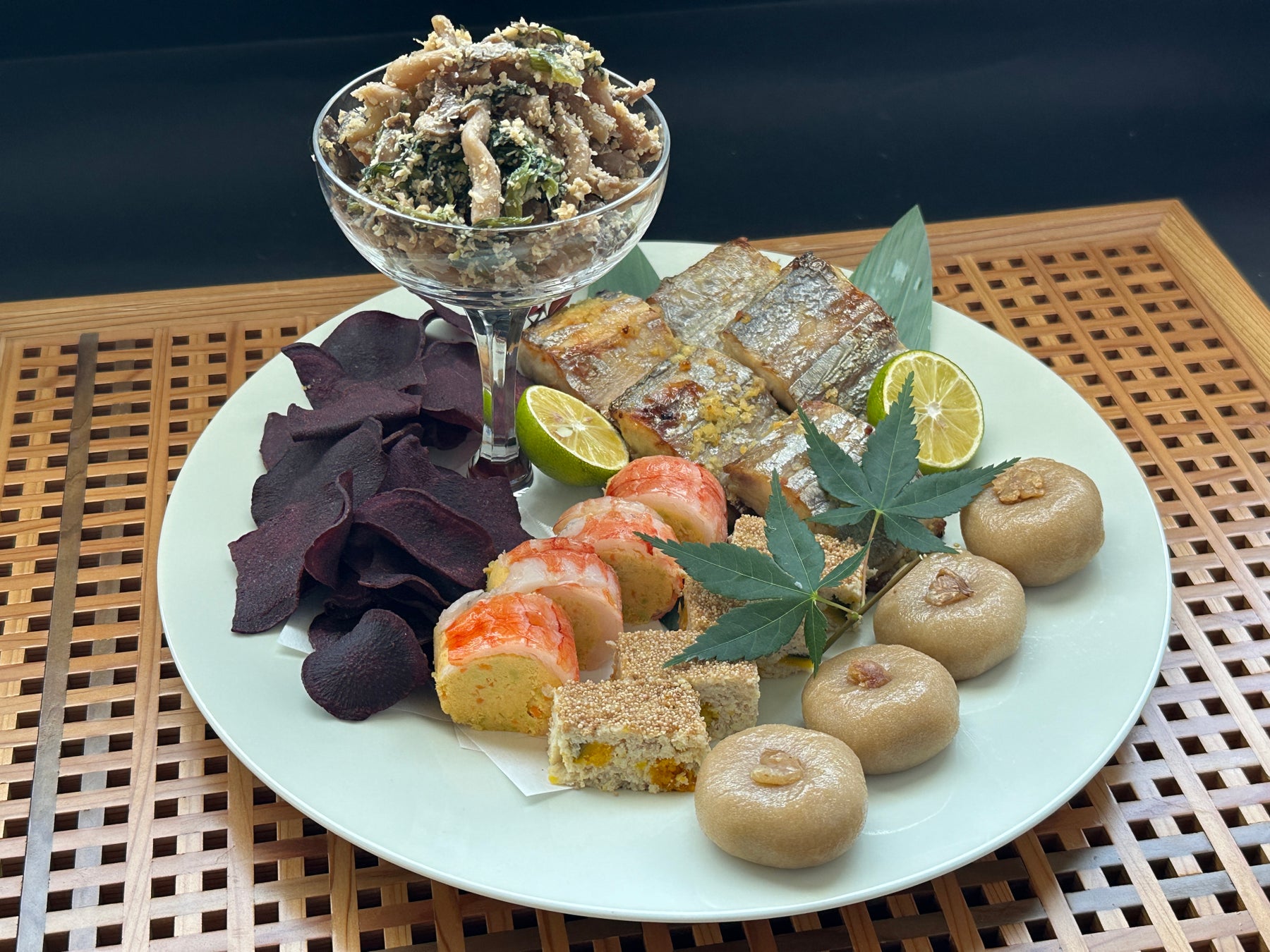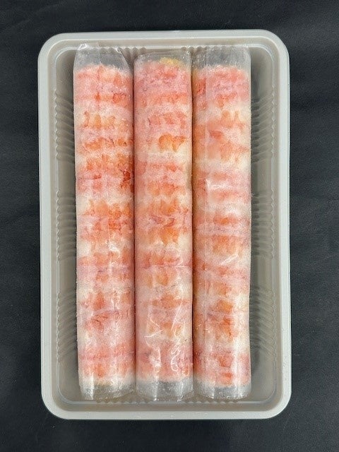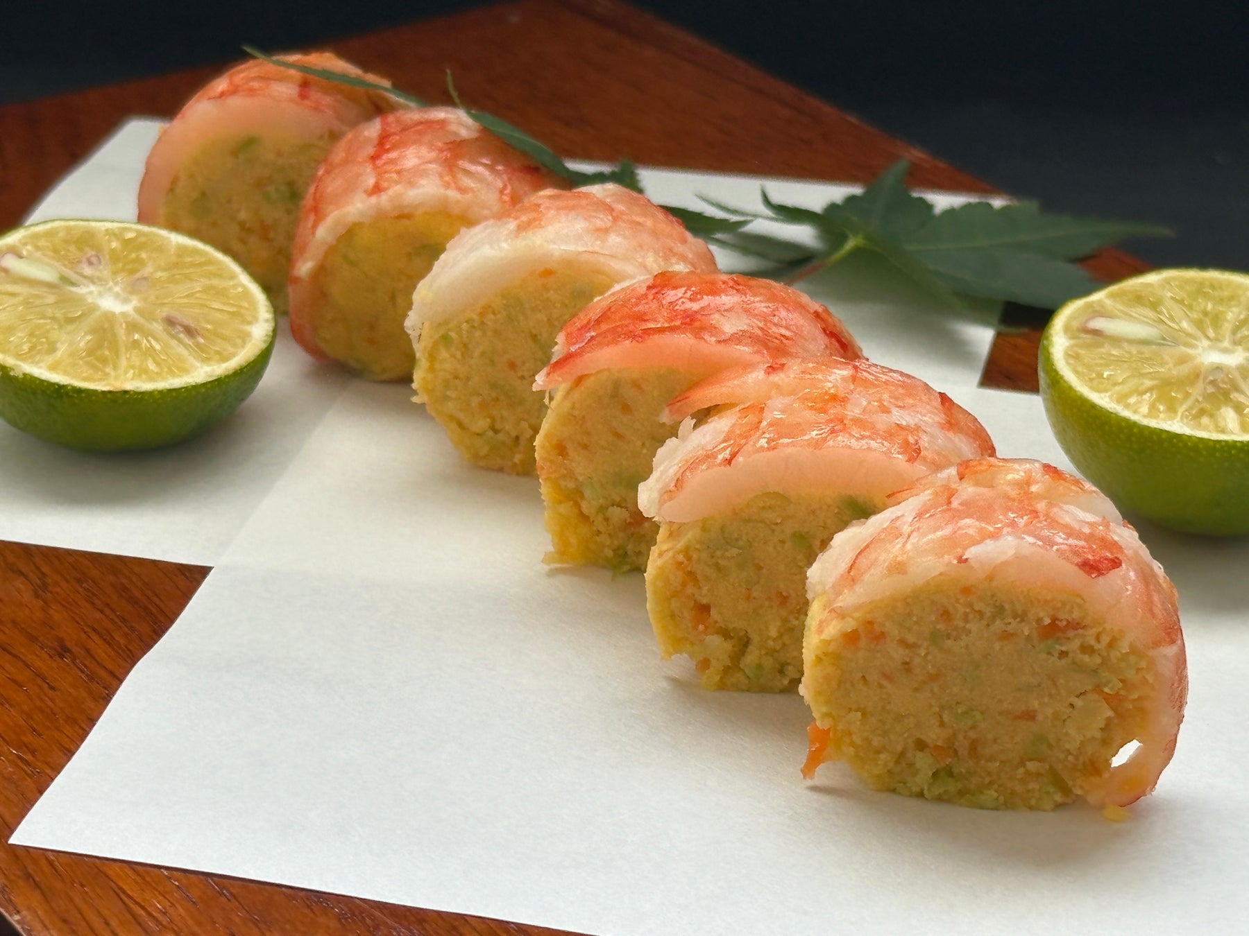 「海老野菜黄身寿司」は、彩り鮮やかな見た目と、解凍するだけで手軽にお使いいただける点が特長の商品です。すり身ベースのシンプルな味付けながらも、海老の旨みをしっかりと感じられる高級感のある味わいに仕上げました。