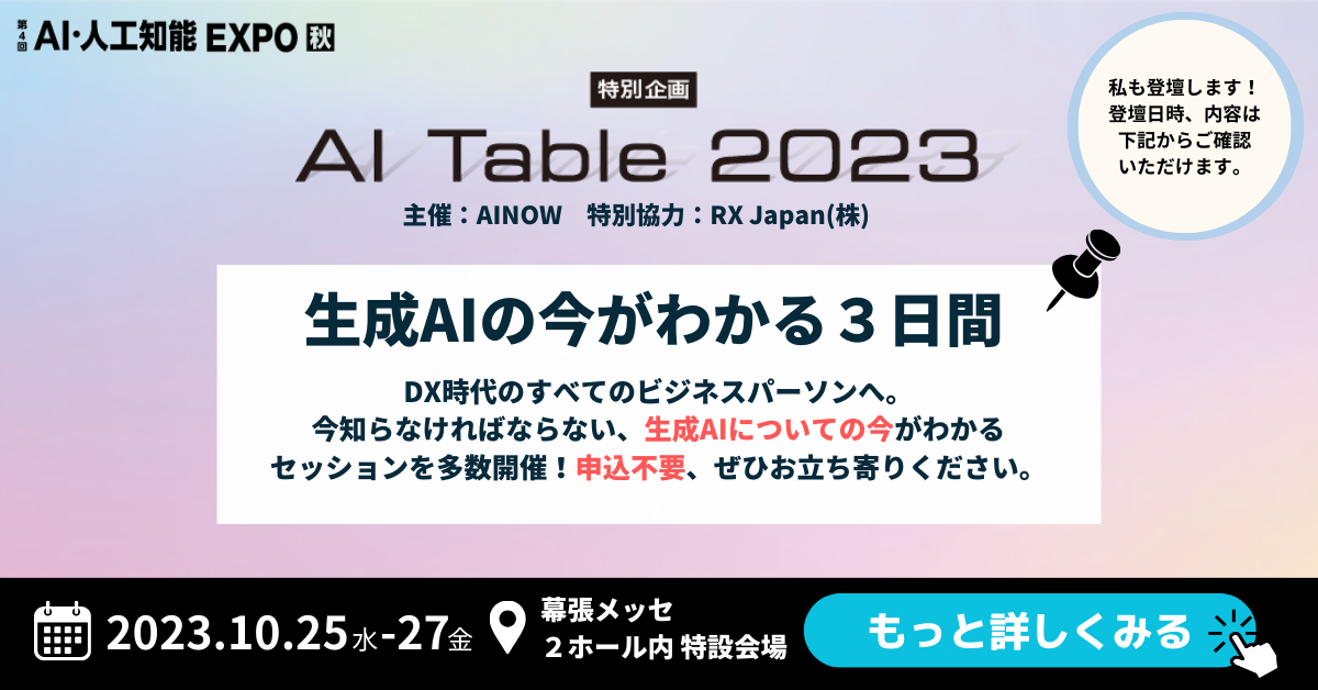 生成AIの今がわかる3日間URL:https://www.nextech-week.jp/autumn/ja-jp/conference/ai-table.html