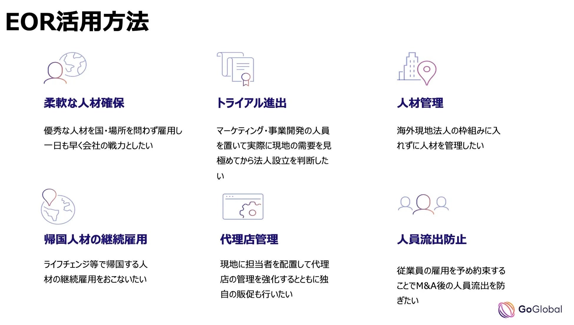 「海外雇用代行(EOR)サービス」サービス詳細はこちら:https://goglobalgeo.com/ja-jp/