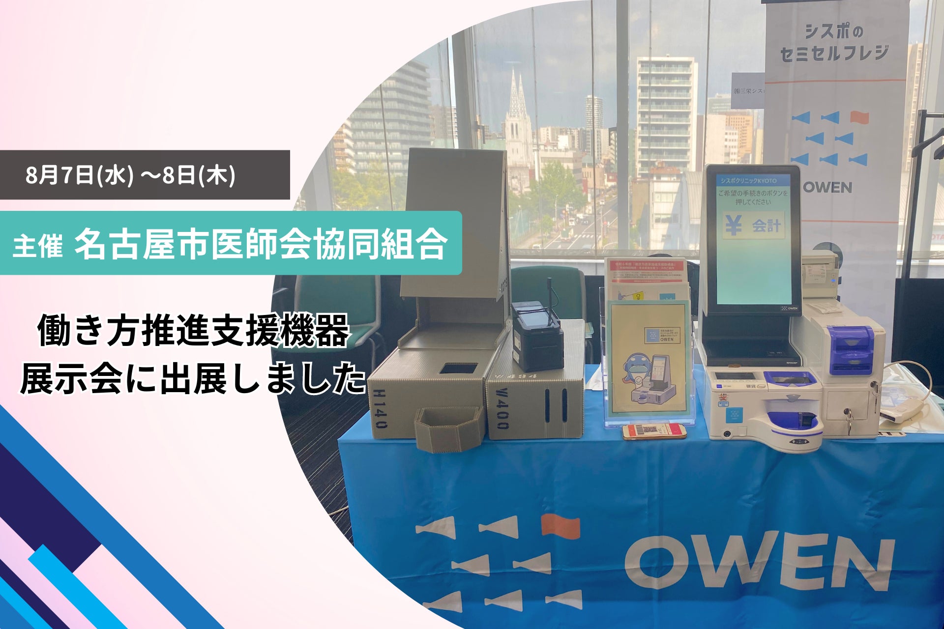 医療機関向けセミセルフレジ『OWEN(オーエン)』は、名古屋市医師会協同組合が主催する働き方推進支援機器展示会に出展しました