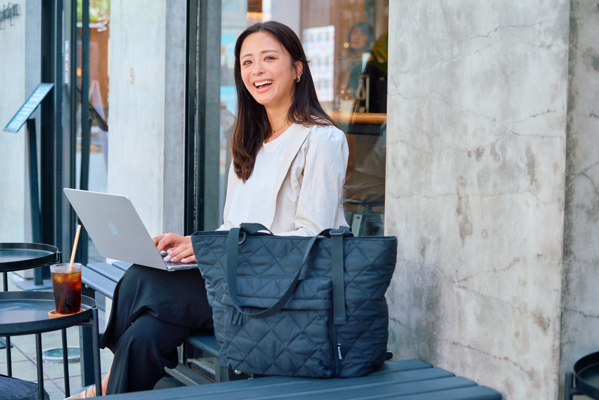シンプルながら上質なキルティング素材は、育児用バッグの枠を超え、ビジネスから普段使いまで幅広く対応。