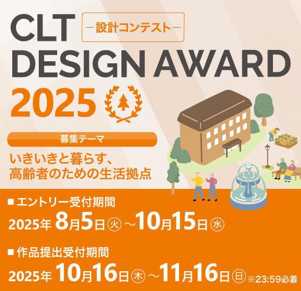 一般社団法人日本CLT協会(所在地:東京都、代表理事:中島浩一郎)は、令和7年度林野庁補助事業の一環として、「CLT DESIGN AWARD 2025 -設計コンテスト-」を開催いたします。