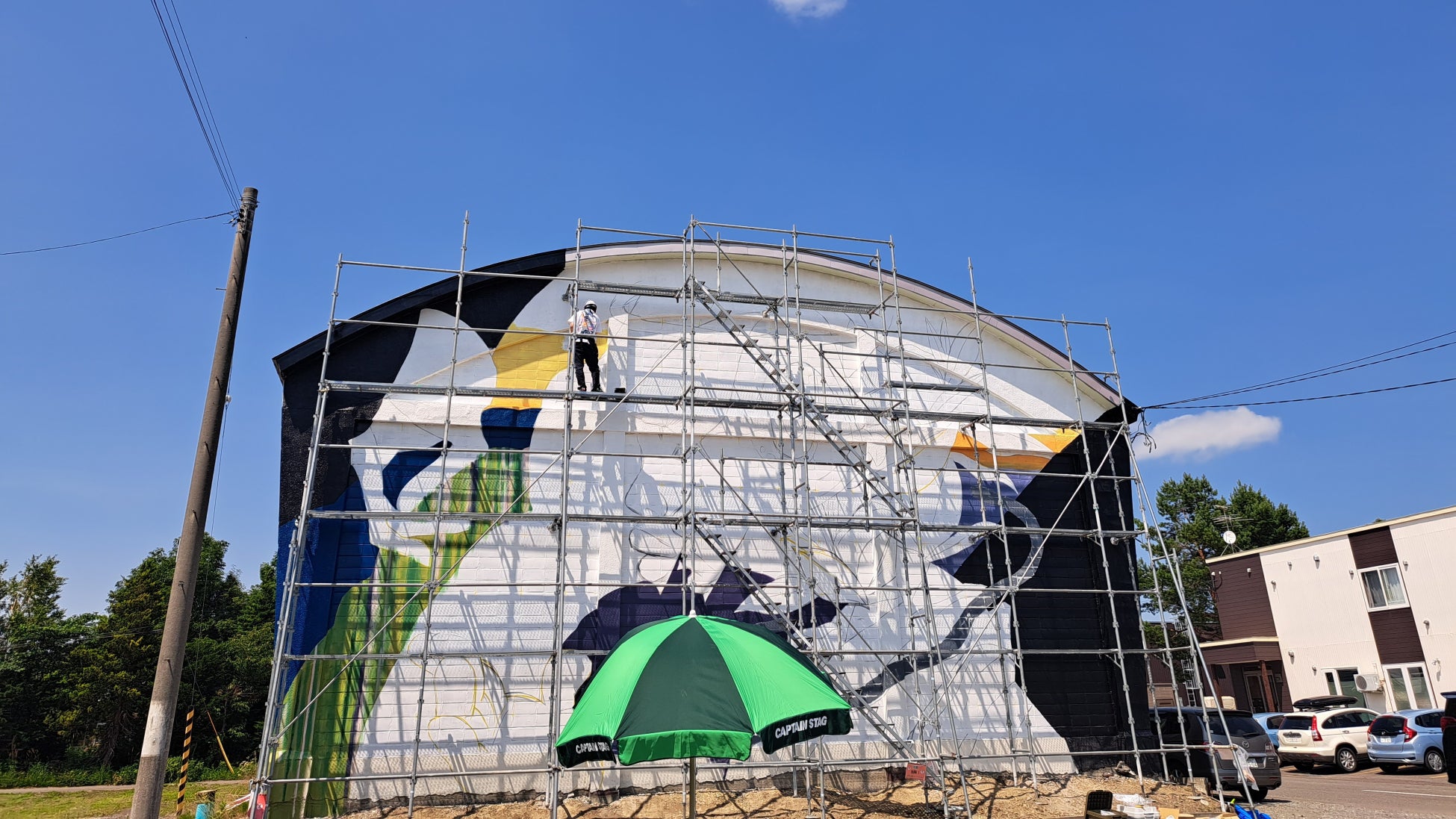 7月1日(火)~の公開制作では、村民や観光客がアーティストの創作過程を間近で見学可能。7月18日(金)の新篠津村商工会夏まつりでは、完成した壁画のお披露目をします。
