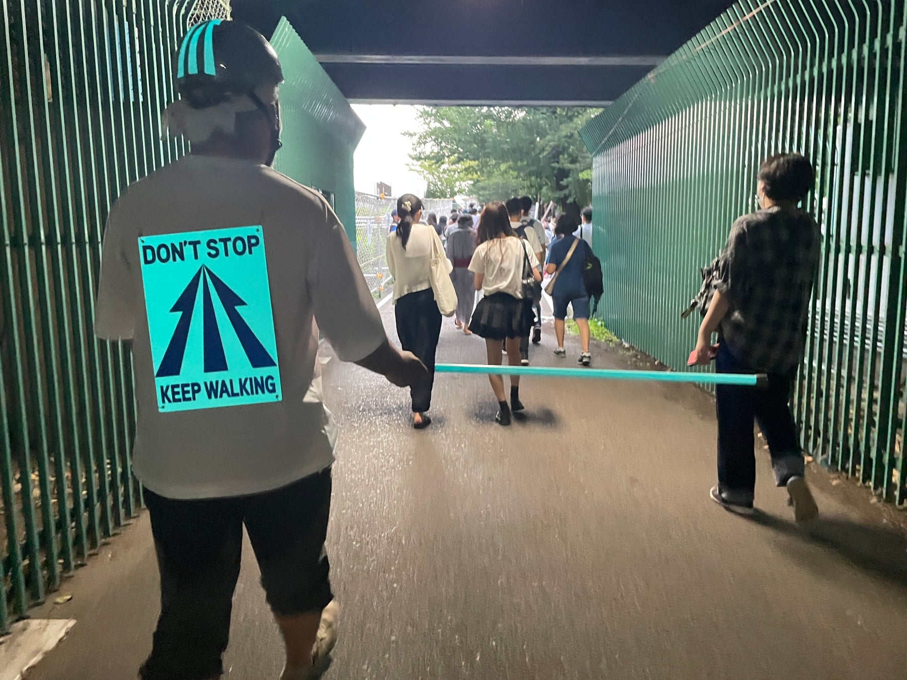 また、固定設置以外にも、運営スタッフが自ら蓄光アイテムを身につける手法で『来場者と一緒に移動してエスコートする』というユニークな誘導を昨年から継続し、さらにパワーアップして実施。複数人の蓄光着用スタッフが音声案内も同時に行い移動するなど、スムースな場内移動に貢献しました。