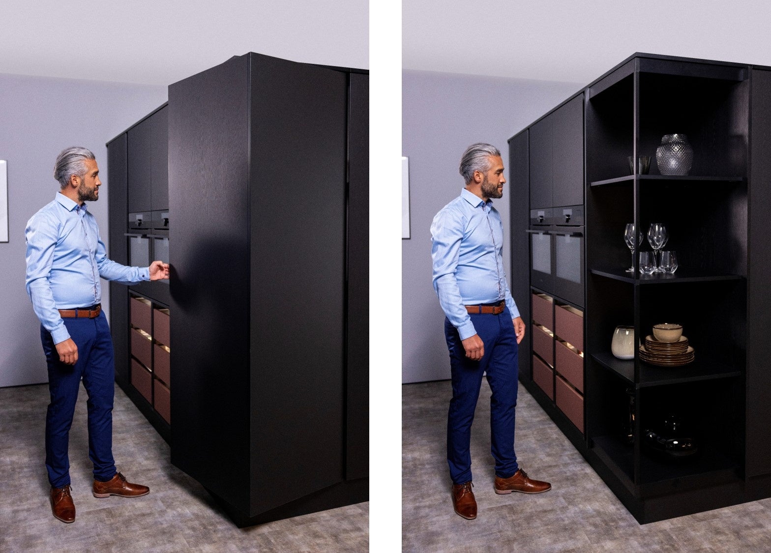 FurnSpin(ファースピン)は、家具をスタイリッシュに回転させることで、独自のオープン&クローズ機能を実現します。