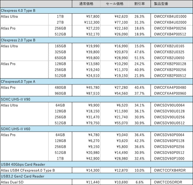 - Atlasシリーズメモリーカードなどが最大51%OFF -