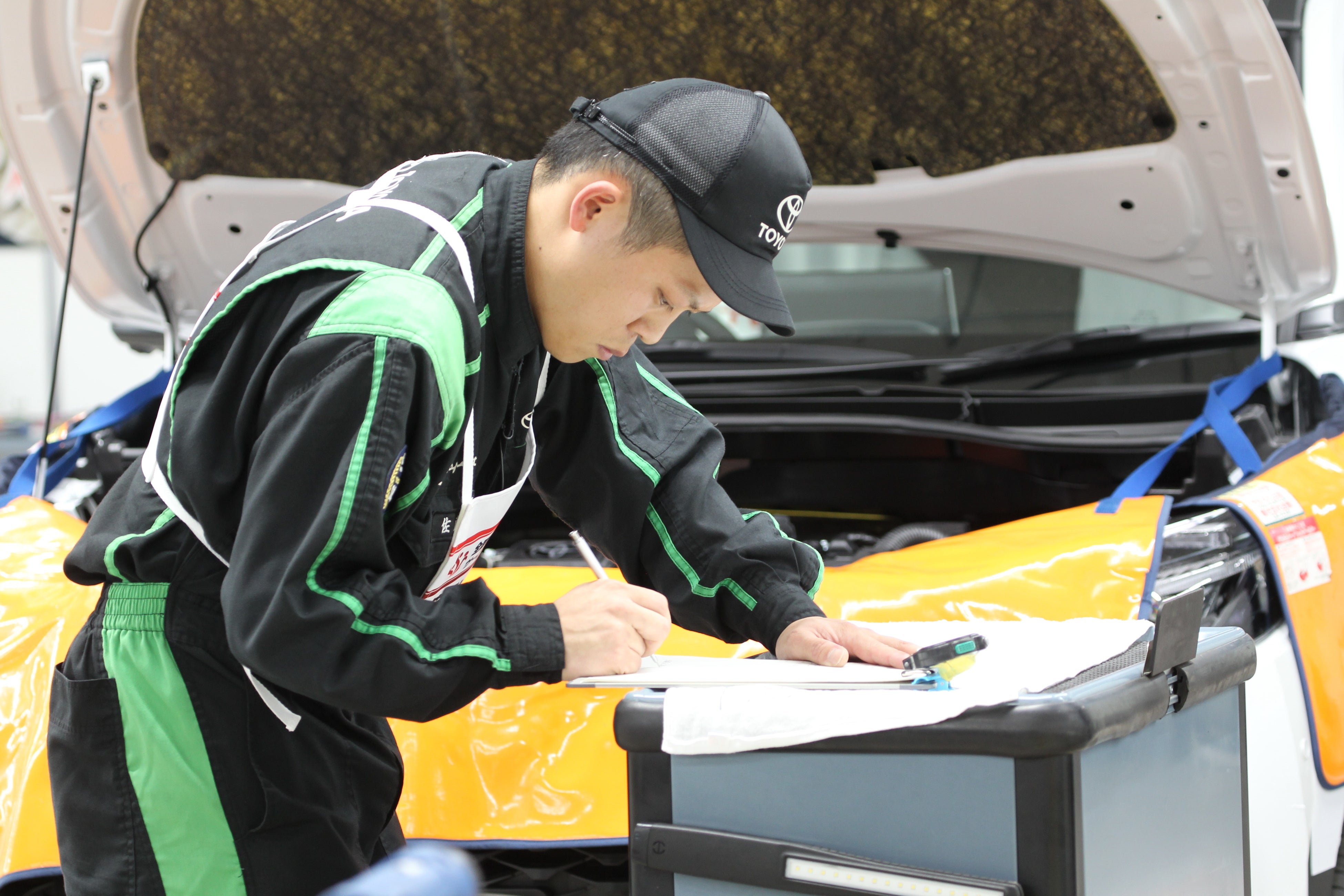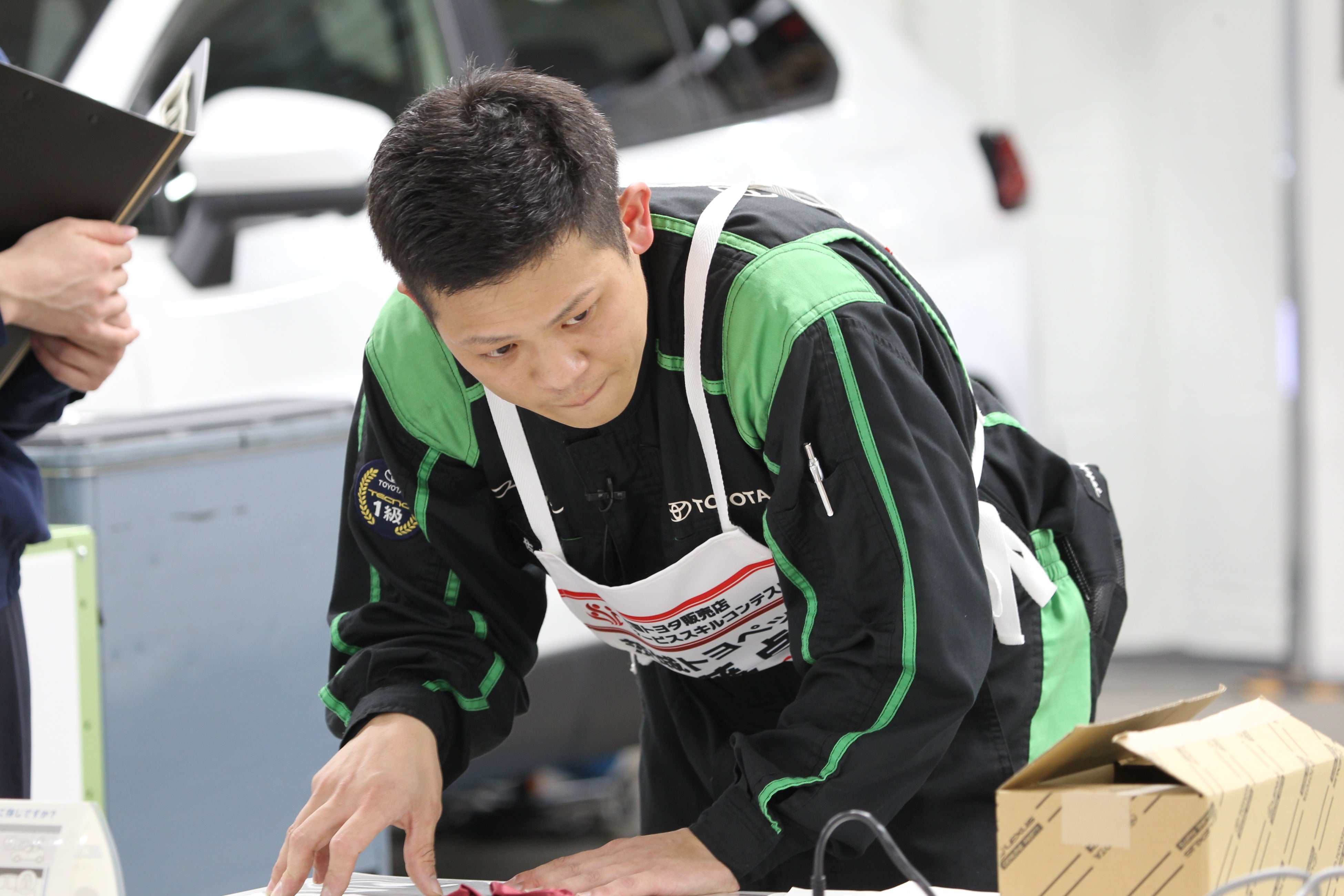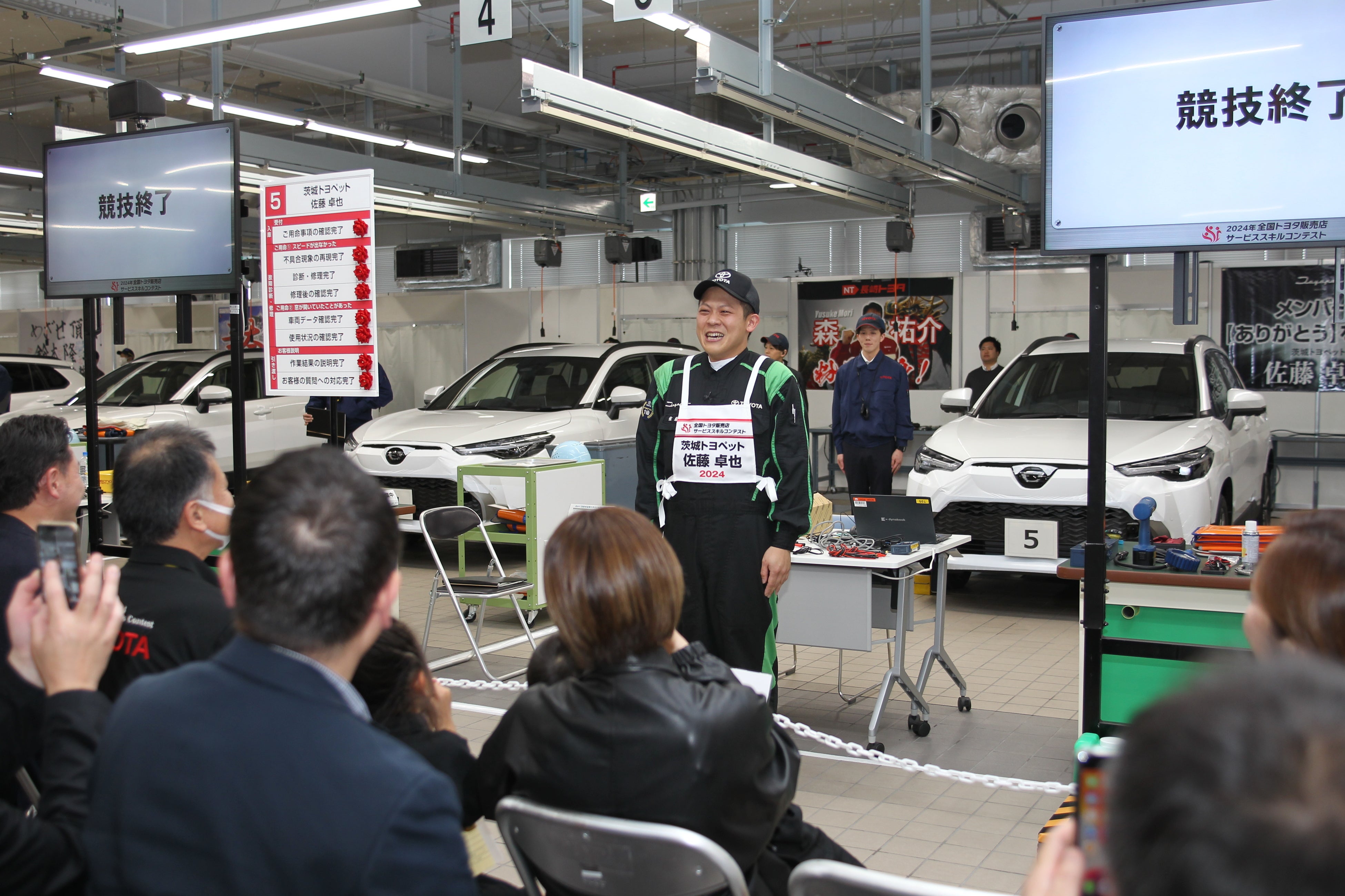 全国の各地区大会を勝ち抜いた55人だけが出場できるこの大会では、エンジニアが日常的に行っている業務を出題し、技術力や人間力を披露しています。参加者は高度な修理作業に必要な知識や技能はもちろんのこと、お客様応対に必要なコミュニケーション能力など多くのことが求められます。今回、茨城トヨペットの佐藤 卓也選手が、2024年 全国トヨタ販売店サービススキルコンテストにて、見事金賞を受賞しました。