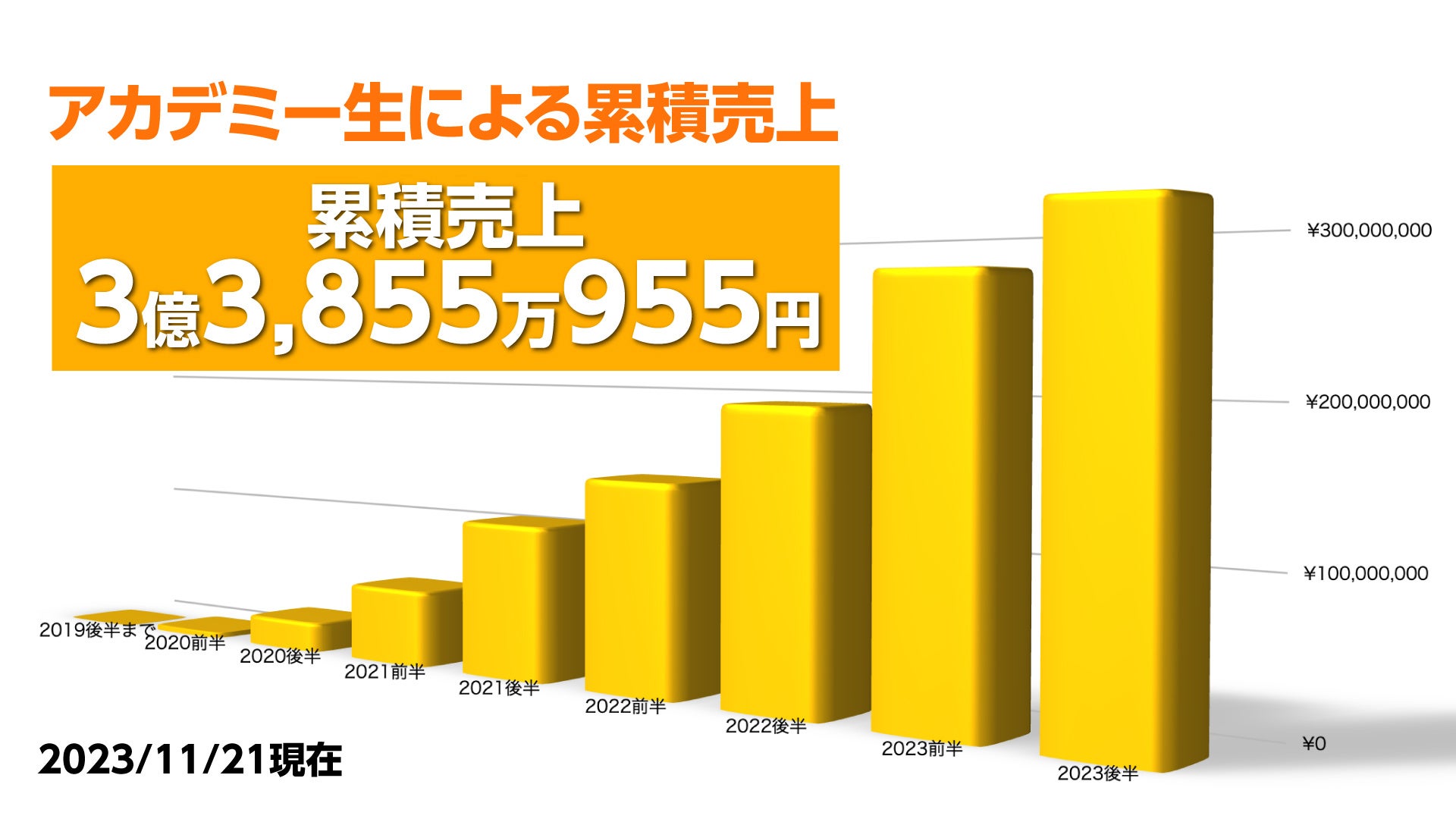 1期からの累計売上は、3億3,855万955円(2023年11月21日現在)となりました。(成果報告があった数値のみ)クリエイターズアカデミーは、受講期間中から仕事の依頼を受けお絵かきムービーを販売するための学びとバックアップ環境を常にアップデートし参加者の挑戦をサポートしています。