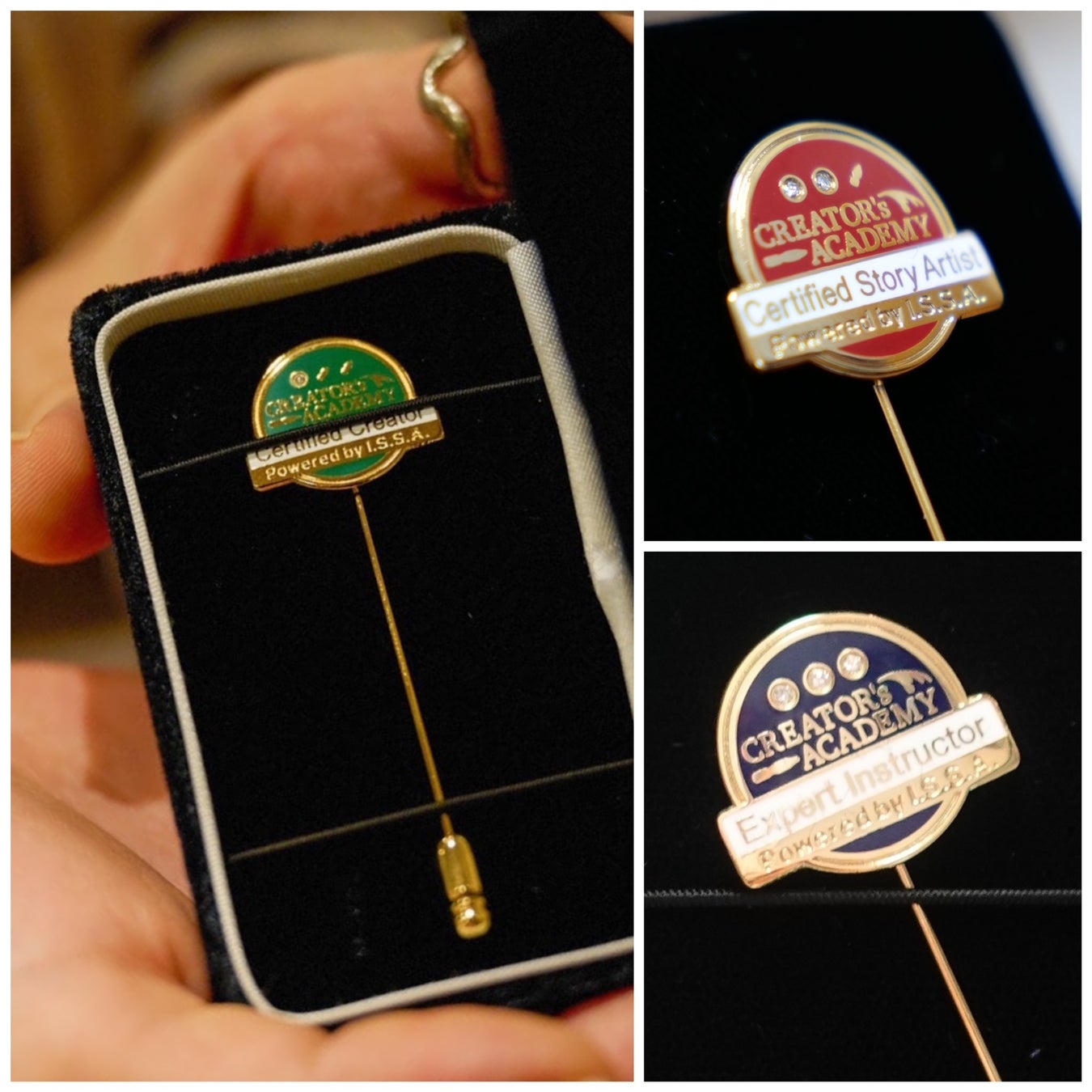 (右上)認定ストーリーアーティストに贈られるバッチ