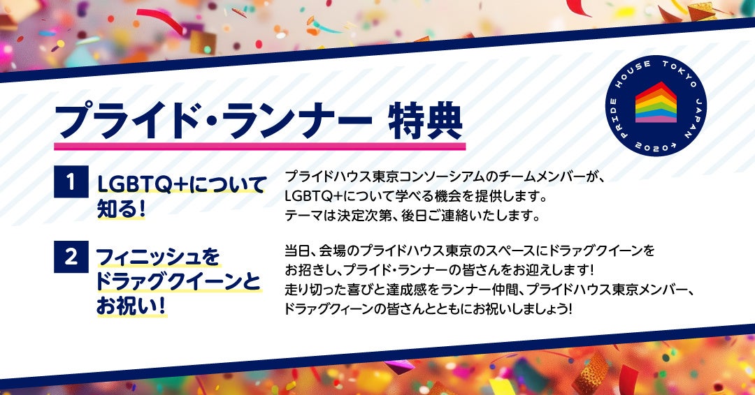 NPO法人プライドハウス東京が「東京マラソン2025」寄付金及びチャリティランナーを100名募集!「プライド・ランナー」として、マラソンを通じてLGBTQ+インクルーシブな社会をともに目指しましょう!