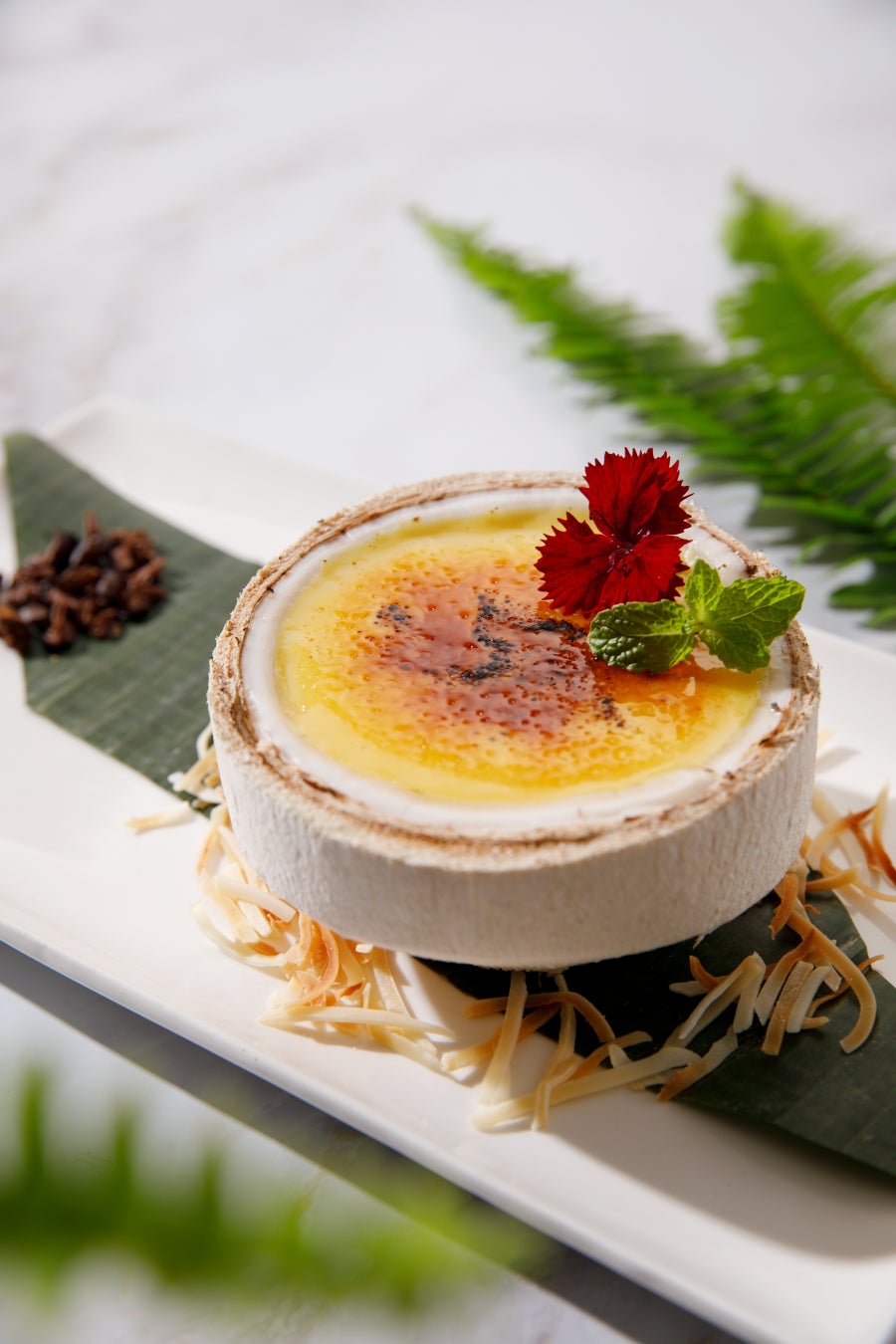 ブラータチーズ | カラマンシーとねぎのオイル | ハワイ産キアヴェハニーをまとったマカダミアナッツ | マイクロ赤紫蘇