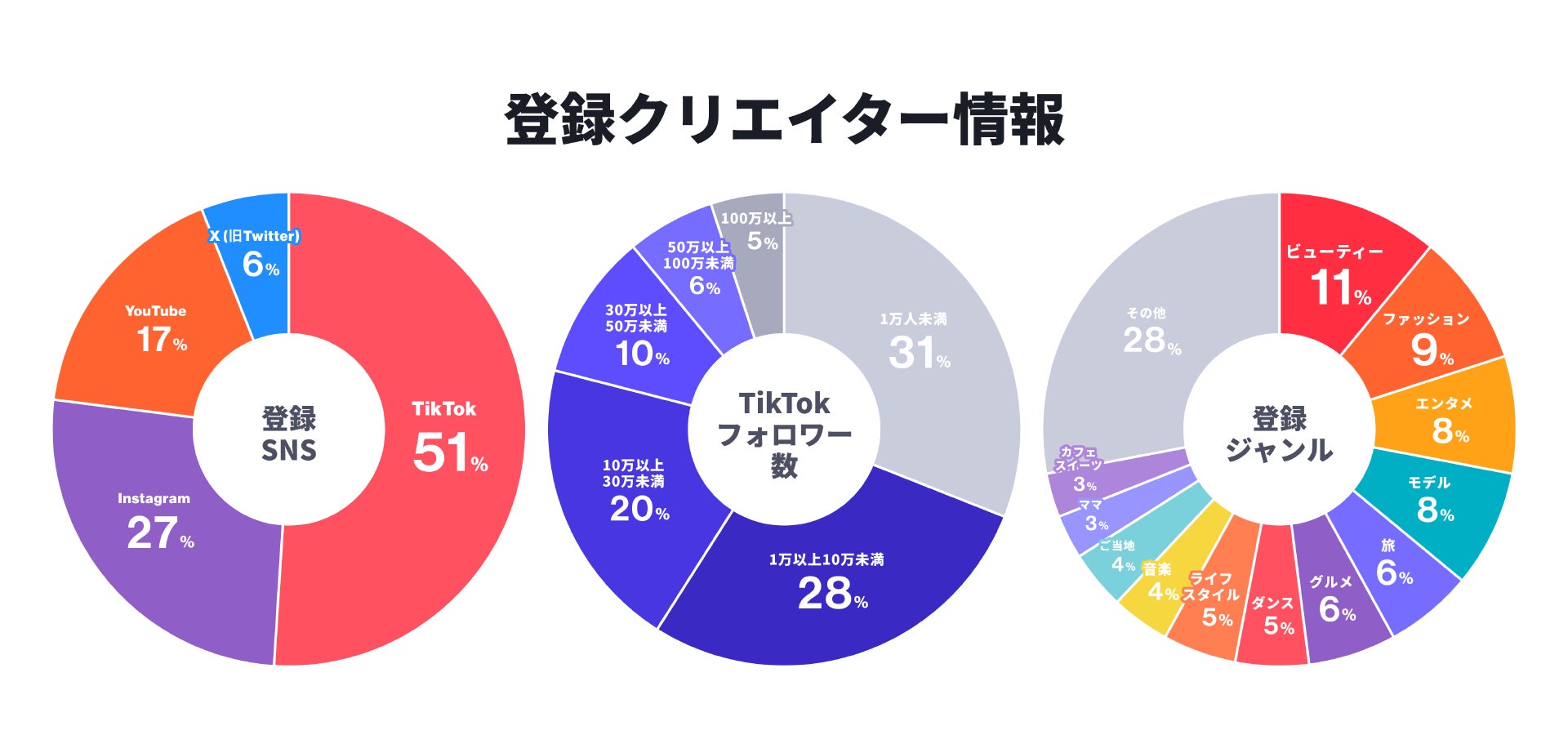 これらの活動の結果、サービス開始1年で登録クリエイターの総フォロワー数が2.5億人を突破することができました。特にTikTokのクリエイターに支持を頂き、TikTokでの総フォロワー数が1.5億人と全体の約60%を占めています。