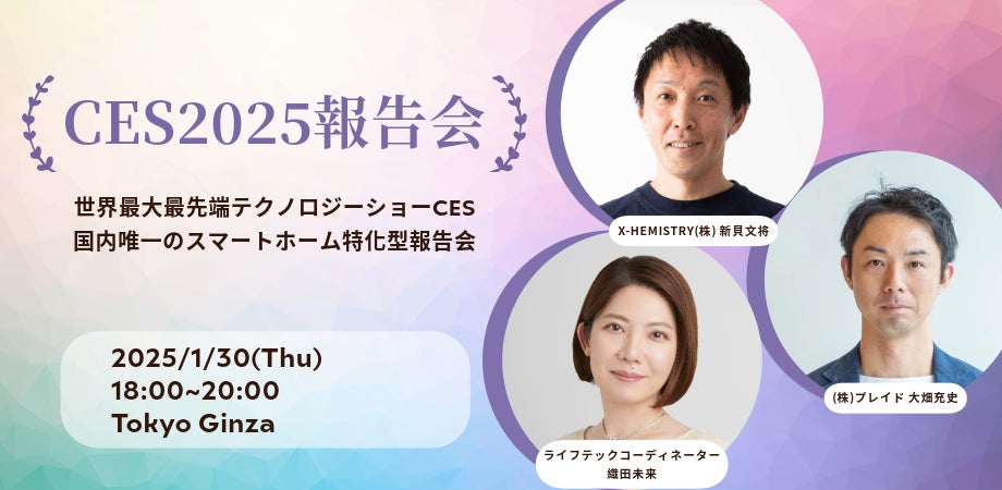 スマートホームに関する事業開発のコンサルティングおよび伴走支援を行うX-HEMISTRY株式会社(本社:東京都、代表取締役CEO:新貝 文将、読み:ケミストリー、以下 X-HEMISTRY)は、2025年1月30日(木)18:00-20:00に株式会社プレイドのオフィスにて「CES2025報告会」を開催いたします。