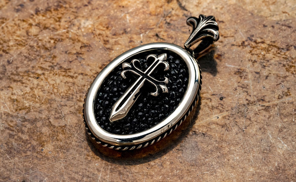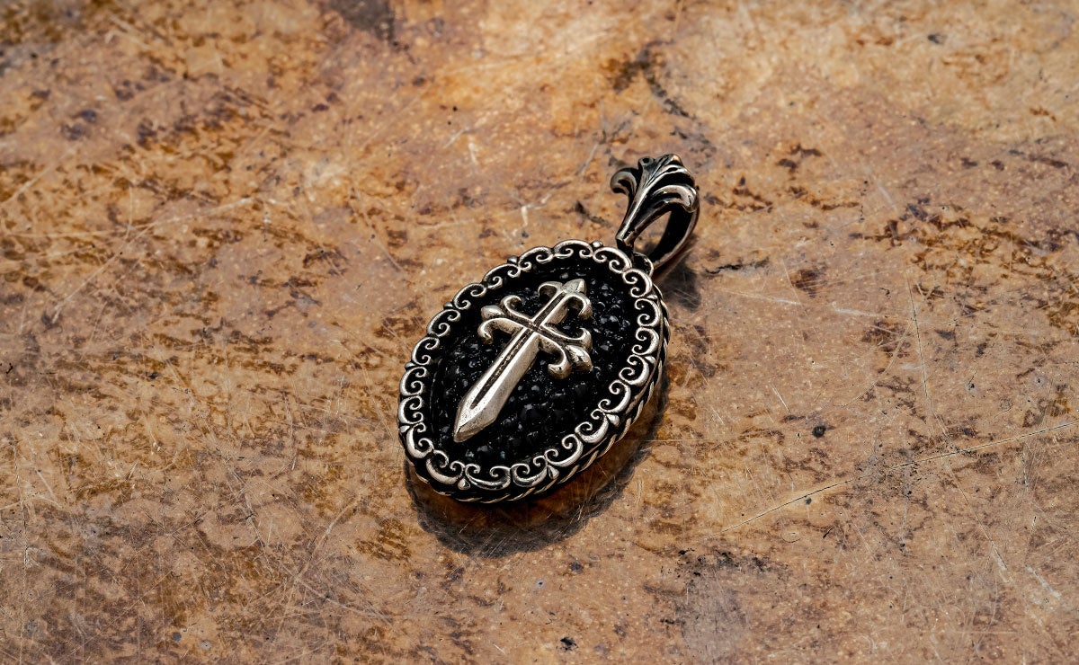 ペンダントの側面には”他者を助ける”という意味合いが込められたロープエッジのデザインを施して、どの角度から見ても高いデザイン性を誇る。