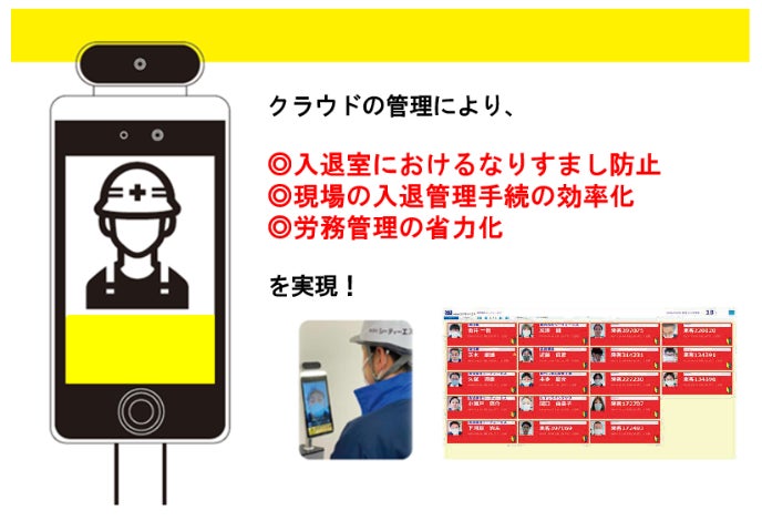 本サービスは、建設現場における現場作業員の入退場管理を、AIによる顔写真の自動照合と、同データを含めた入退場管理情報の照合をクラウド上で行うシステムです。