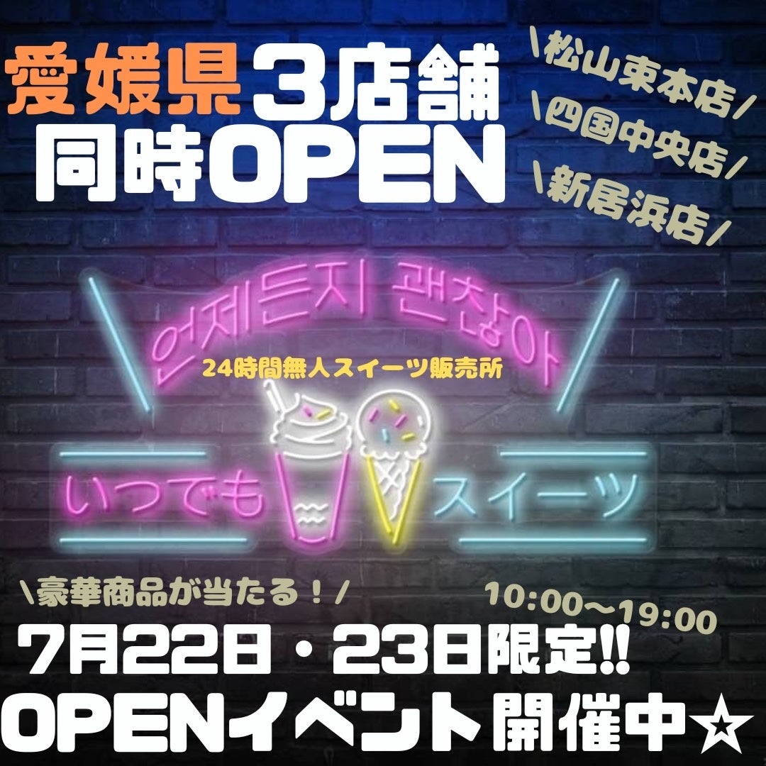 あの福岡、広島で大人気の『いつでもスイーツ』が愛媛県に3店舗同時オープン!松山市/束本・四国中央市/四国中央・新居浜市/新居浜にオープン!