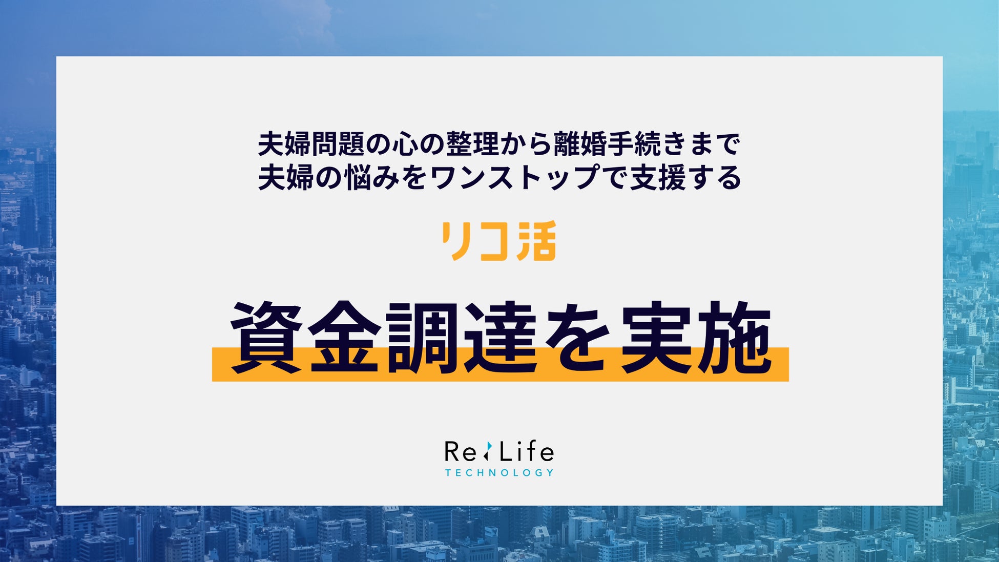 株式会社リライフテクノロジーは、Yazawa Venturesをリード投資家とするシードラウンドにおいて資金調達を完了しました。本資金は、主力サービス「リコ活」の技術開発及び事業拡大を進め、離婚や家族再構築に悩む方々へ革新的なソリューションを広く届けるために活用されます。