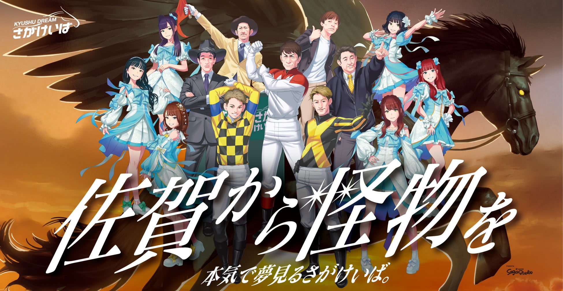 九州で唯一の地方競馬場、佐賀競馬(佐賀県競馬組合)。2025年度の新たなスローガンは「佐賀から怪物を 本気で夢見るさがけいば。」佐賀競馬発、全国に名を轟かせる“怪物の育成”という新たな夢が走り出します。このメッセージを全国に向けて宣言するために、Cygames 佐賀スタジオとの夢のコラボレーションを実現。佐賀競馬の主要人物たちが、二次元キャラクター化されて登場します。新たな“次元へ”と突き進む、佐賀競馬の今後の展開にご期待ください。
