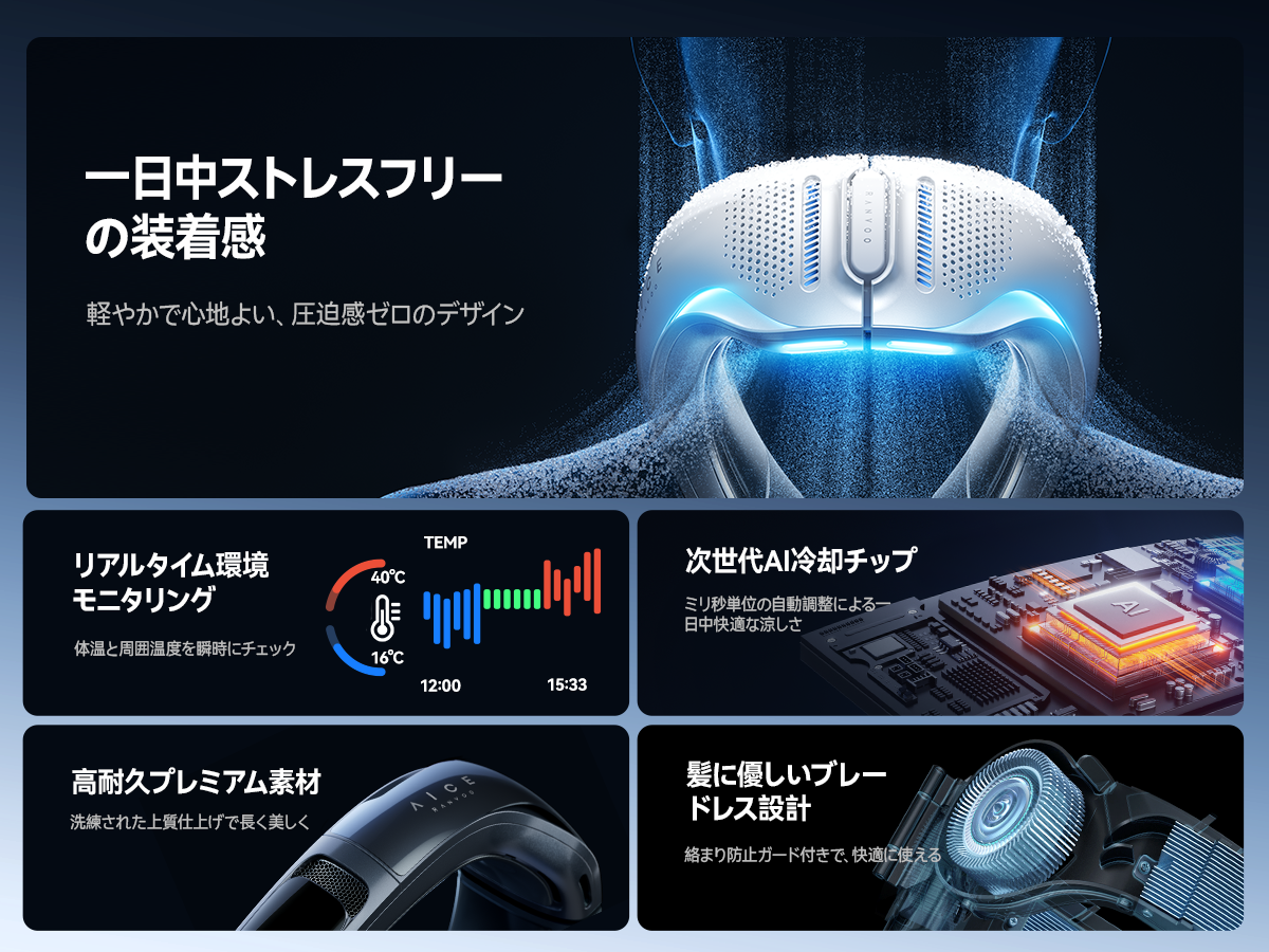 その中でもRANVOOのネッククーラーは、こうした利便性に加え、冷却性能の向上にも注力。酷暑環境においても、より高い冷却効果を体感いただける設計となっています。
