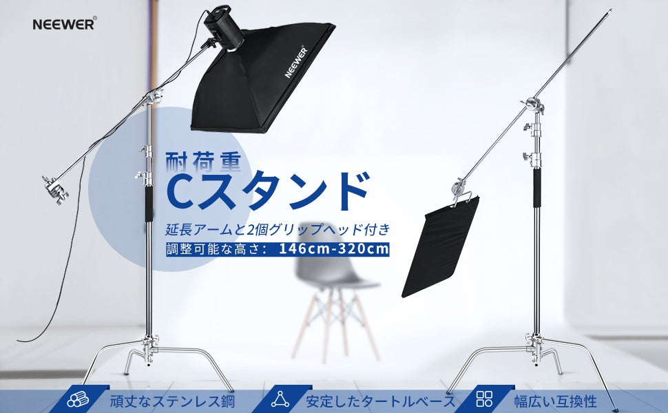 URL:https://neewer.jp/neewer-305cm-stainless-steel-c-stand-with-boom-arm-10087101?ref=neewer