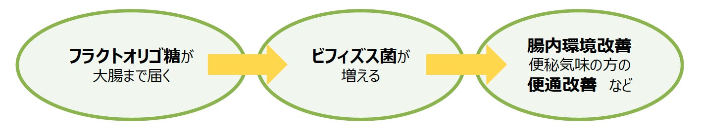 本品にはフラクトオリゴ糖が含まれます。フラクトオリゴ糖は、腸内の善玉菌であるビフィズス菌を増やし、腸内環境を改善し、便秘気味の方の便通を改善する機能があることが報告されています。(届出番号:J34)