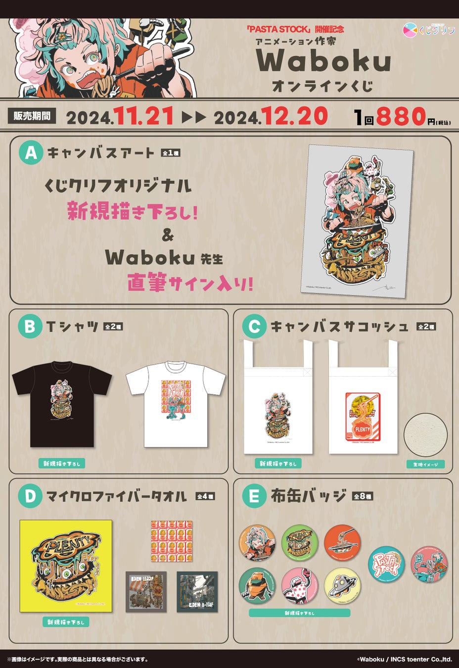 また、このくじはWaboku氏の個展「PASTA STOCK」との連動企画であり、2024年11月21日から11月25日(月)まで北参道(東京)のTerritory Galleryにて開催されます。