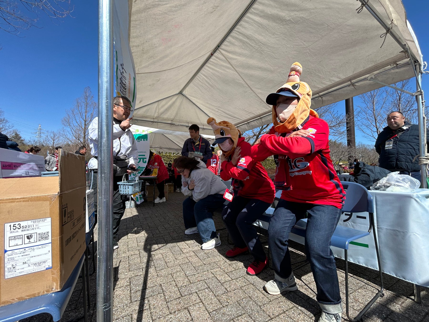 またスタジアム外では、災害時にも重要となる足の筋力を測定する体力測定ブースを実施。来場者には防寒対策としても活用できる防災用アルミシートを配布し、日常から防災と健康づくりを考える機会を提供しました。