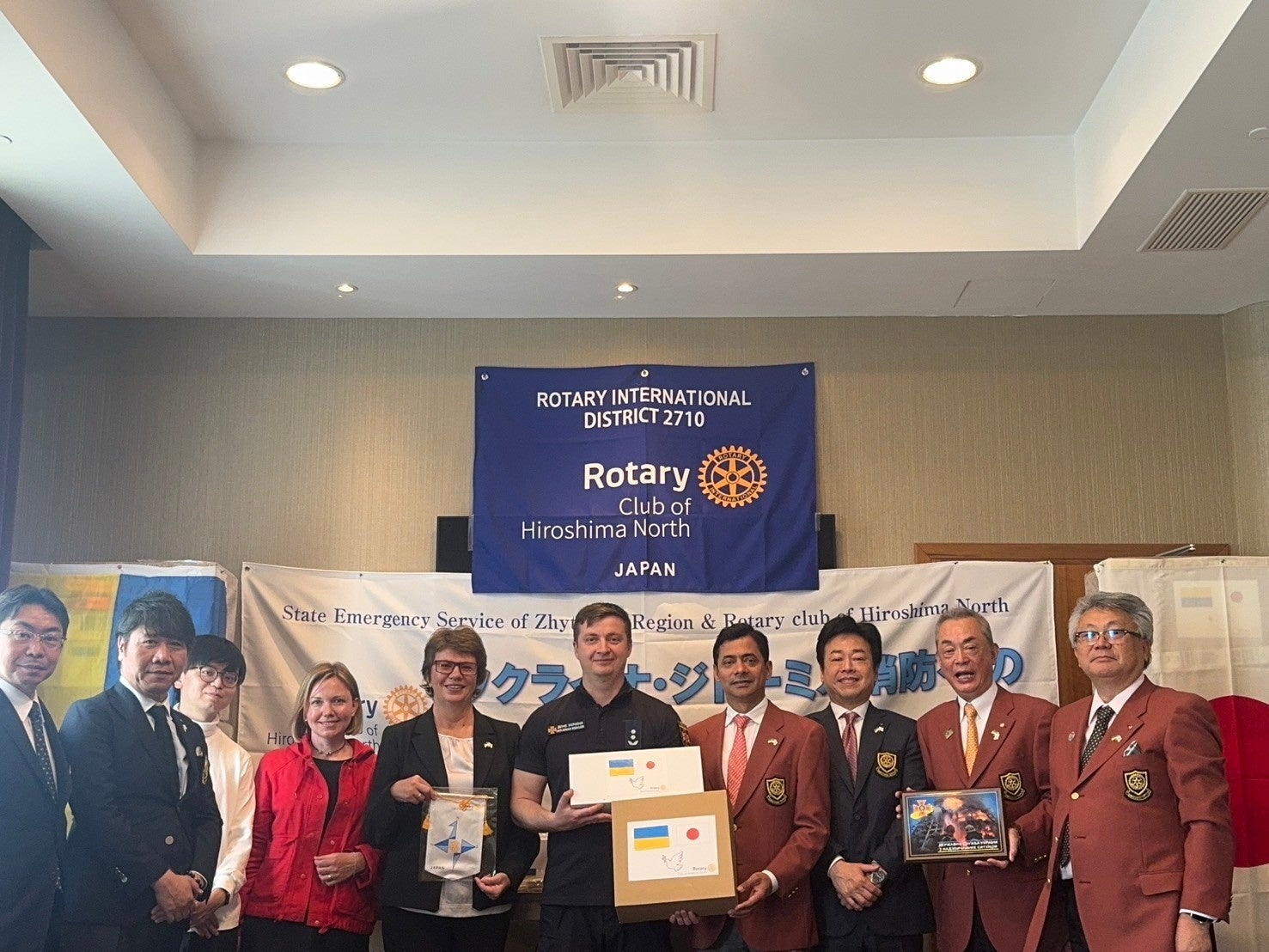 NPO法人ROJE理事の伊藤駿のコーディネートのもと、広島北ロータリークラブ国際奉仕委員会によるウクライナ・ジトーミル消防への消防用品寄贈式が執り行われました