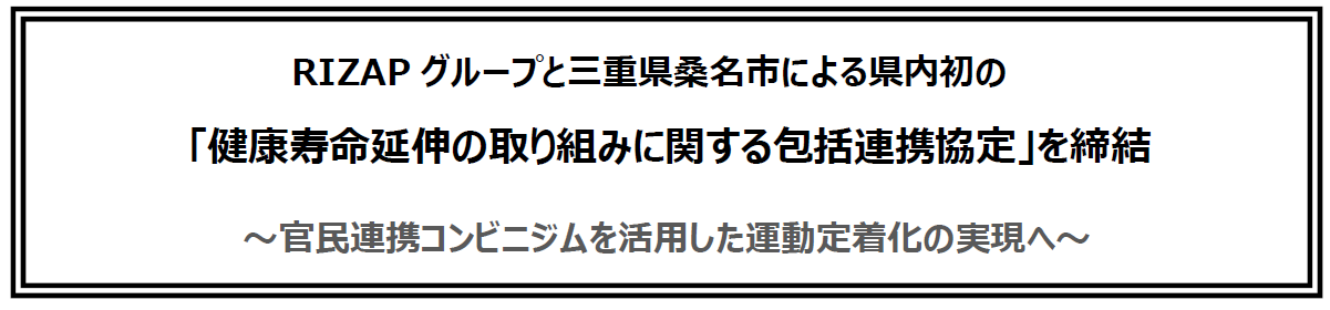 RIZAPグループと三重県桑名市による県内初の 「健康寿命延伸の取り組みに関する包括連携協定」を締結