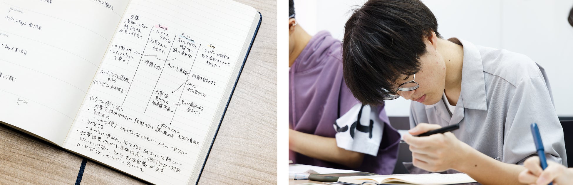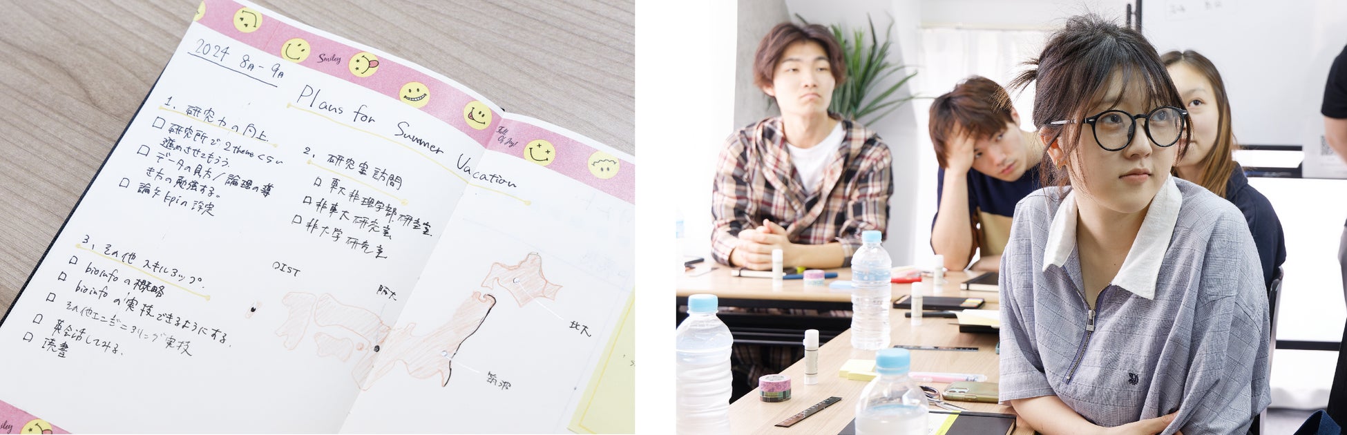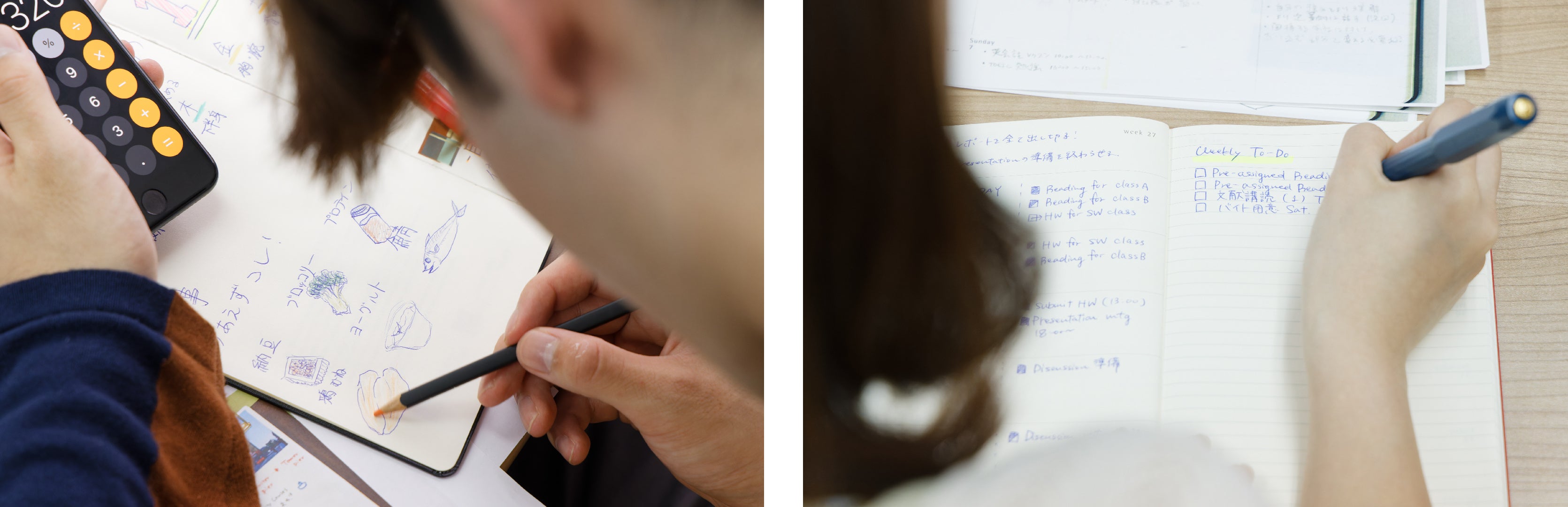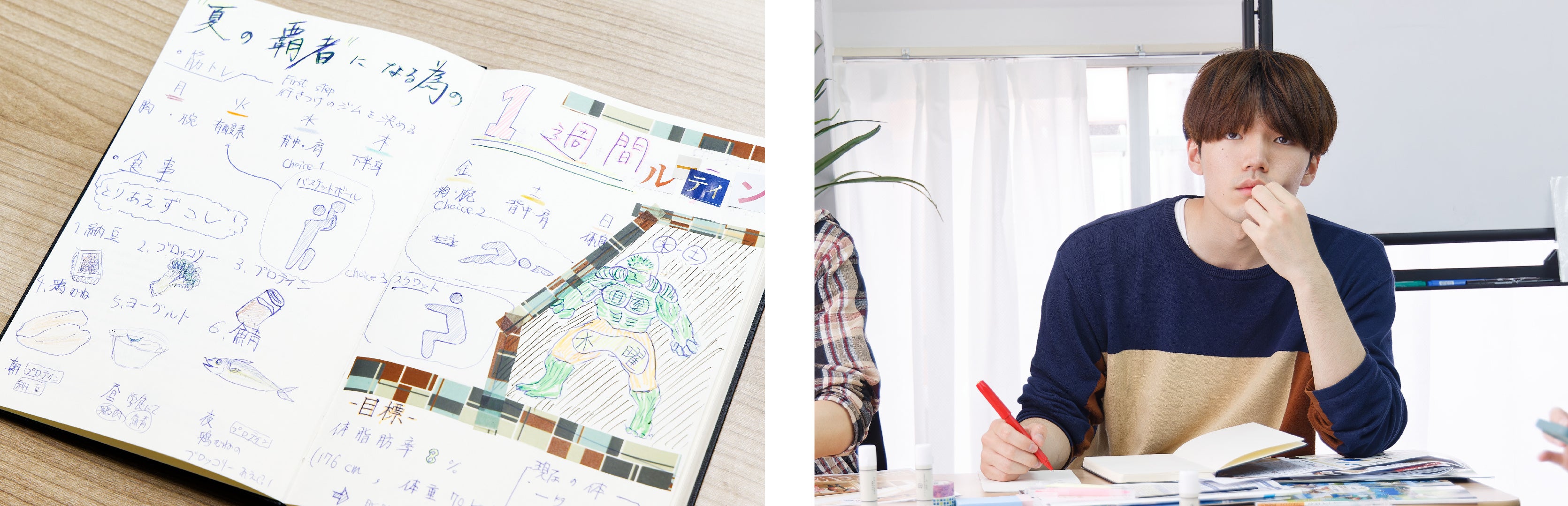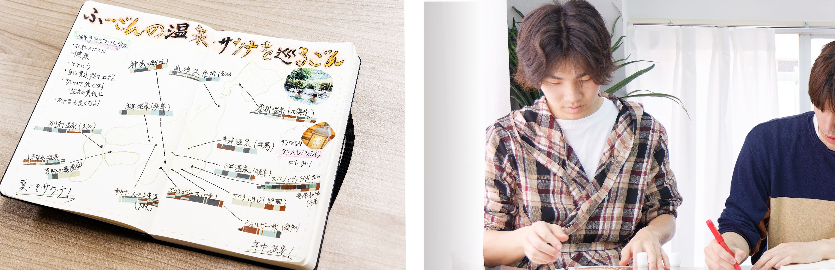 さらに学生たちは過去の経験から、計画を立てる時期として“夏”が重要であることを共通で認識。長期的な休みをどのように有効活用するか、各々が独自に工夫した表現で18ヵ月ダイアリーとノートブックに書き込み、自己実現や学校活動、レジャーなどの計画を立てていました。