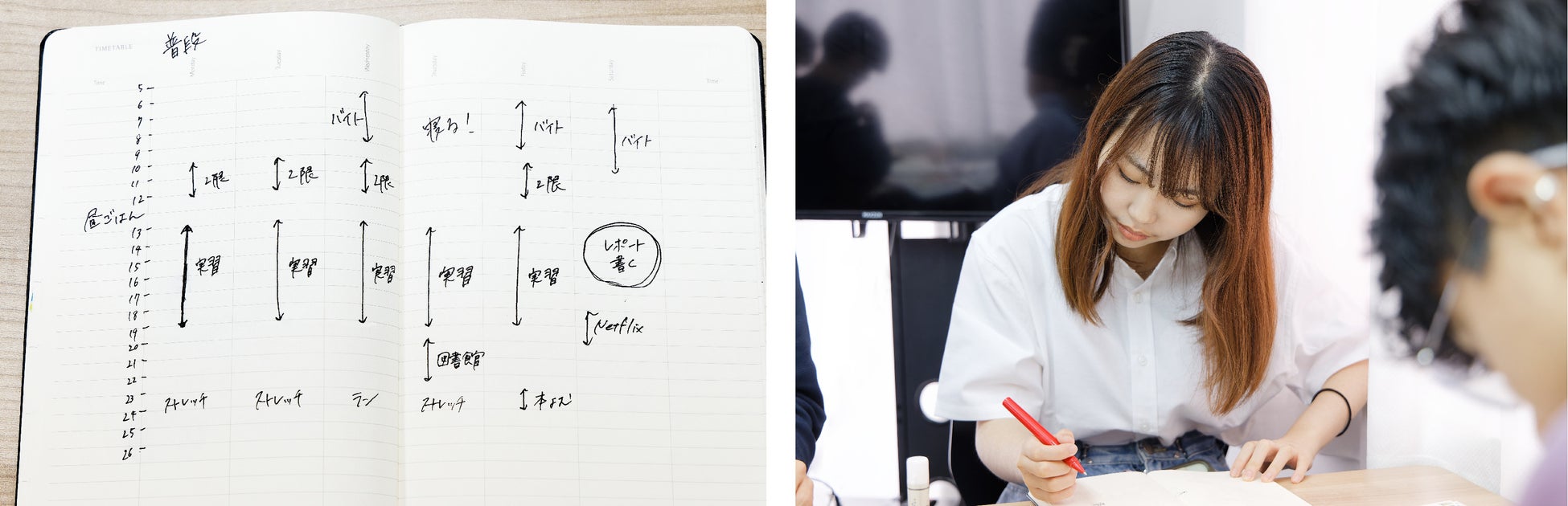 今回のワークショップは2024年4月29日(月)に行われ、TEDxUTokyo実行委員がチームに分かれて18ヵ月ダイアリー(2024年7月始まり)とクラシックノートブックを使い、それぞれの就職活動・大学院進学・サークル・旅行などの計画やログを書き込みました。