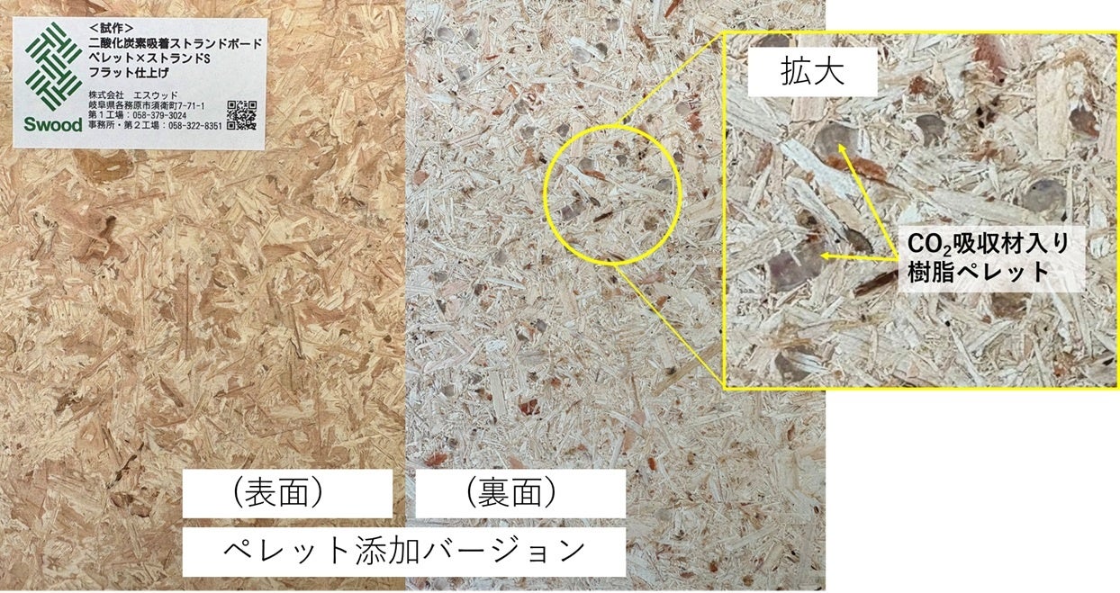 一般的なストランドボードと同等の強度・加工性を保ちながら、建築後も大気中のCO₂をゆるやかに取り込み、内部に固定するという新たな機能を備えています。