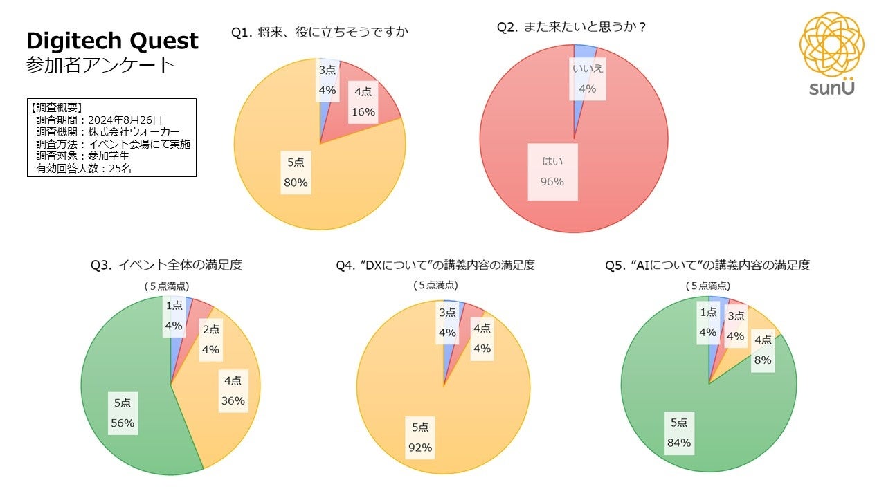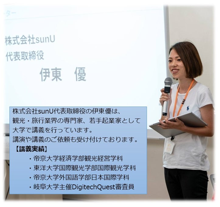 株式会社sunU(本社:東京都江東区、代表取締役:伊東優)は、宿泊施設におけるDXを活用した課題解決をテーマに、2024年8月12日から25日にかけて開催された岐阜大学主催のIT事業体験型イベント「Digitech Quest」に課題提供企業として参加し、学生の活動を支援いたしました。