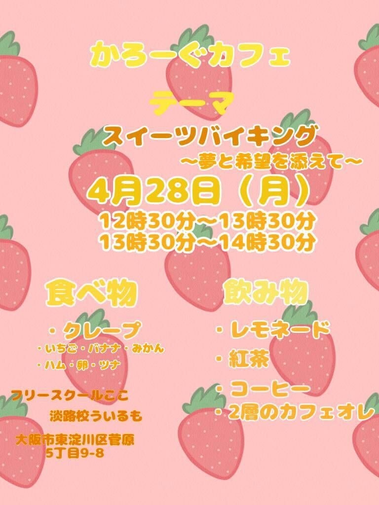 新年度が始まり、新しく小中高生になった子どもたち・新学年になった子どもたちの中で、学校に通うことに不安を感じる子どもたちや地域の方々のためにカフェをオープンします。
