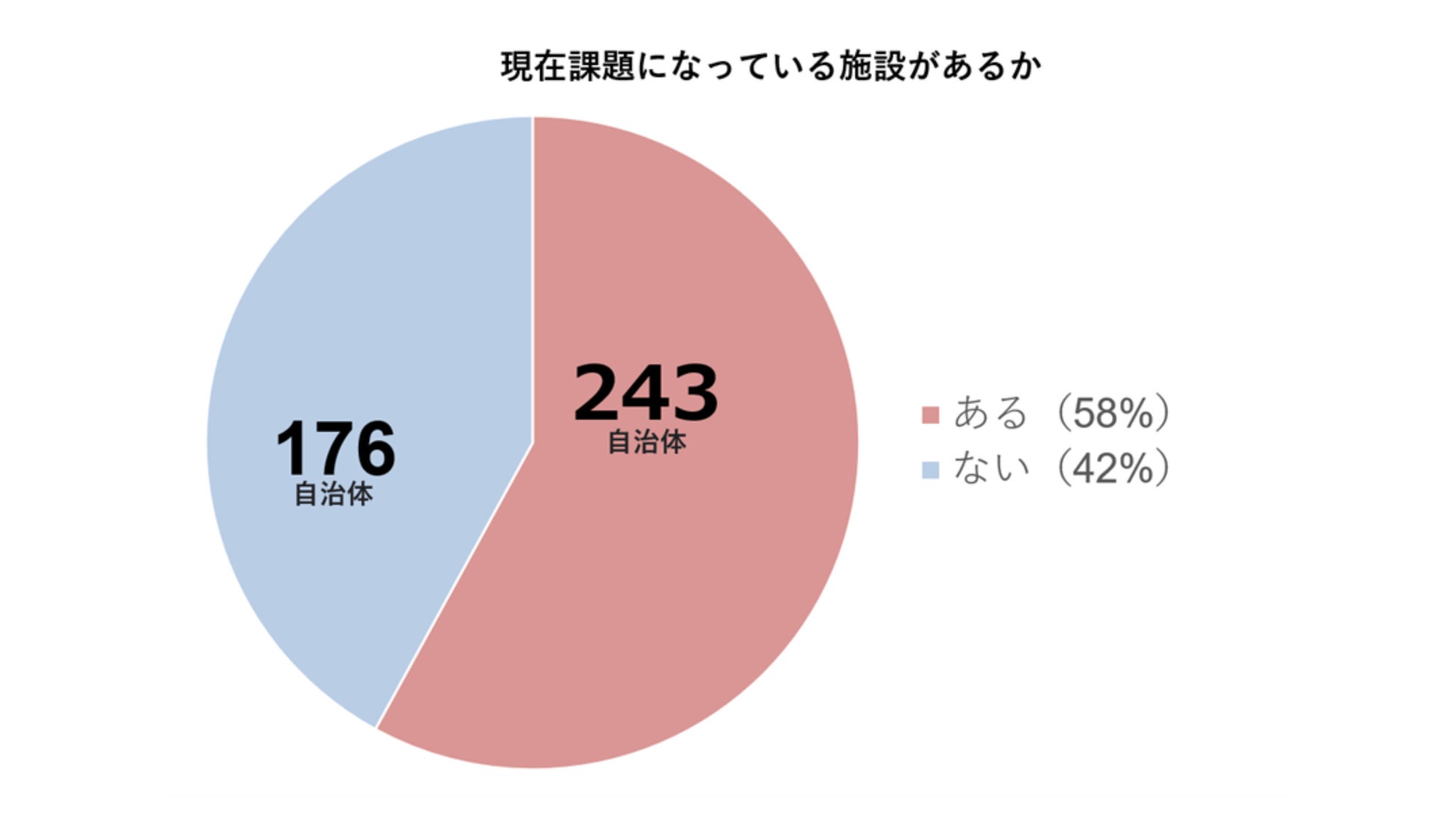 58%の自治体が現在課題を抱える施設を有すると回答。