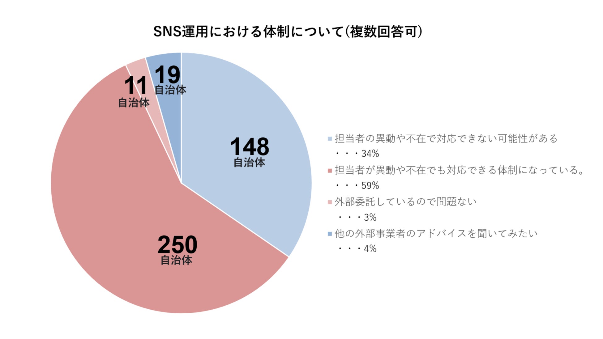 ・40%近い自治体がSNSの運用体制に課題があると回答。