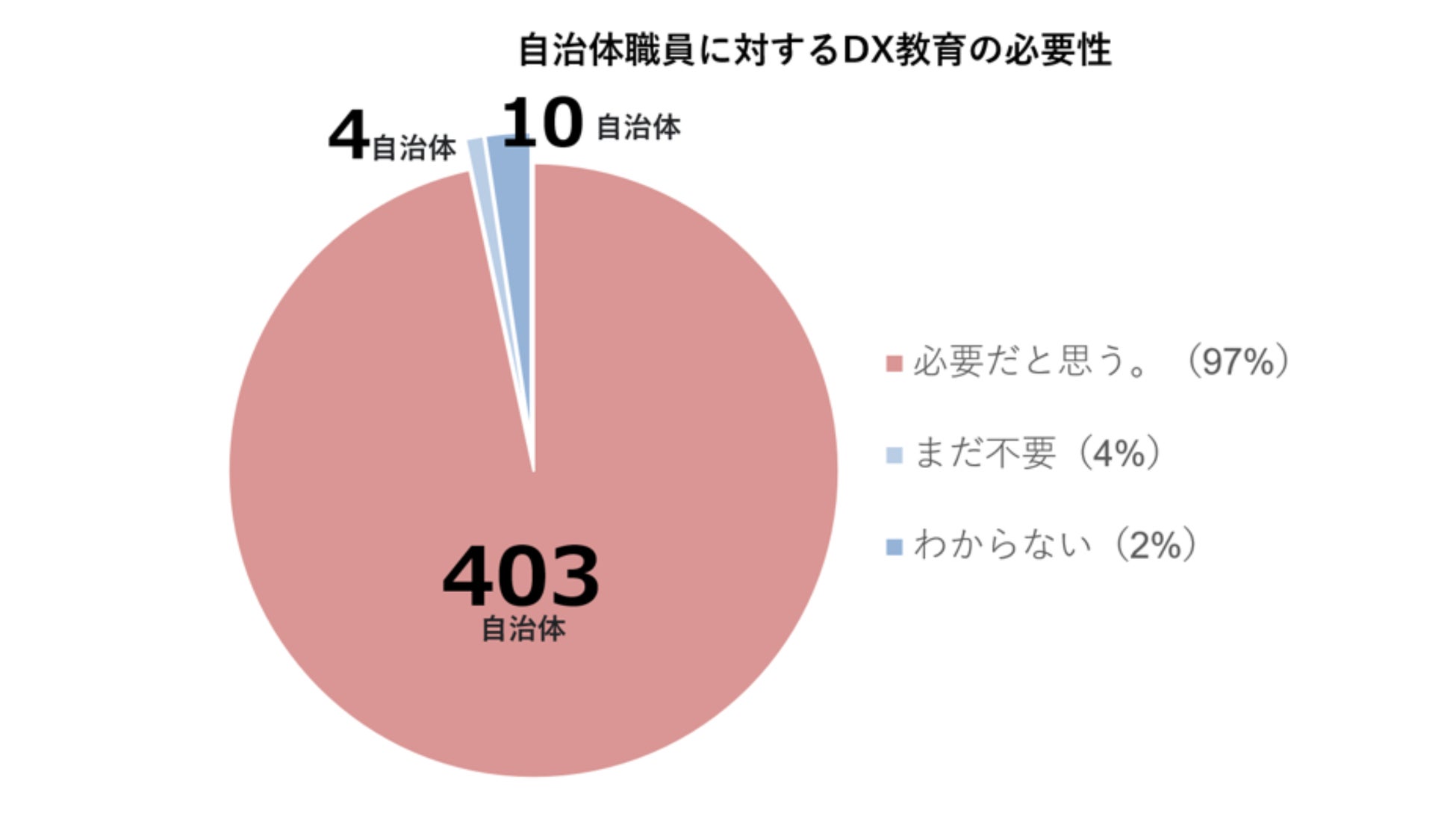 ・97%の自治体が自治体職員に対するDX教育が必要であると回答。