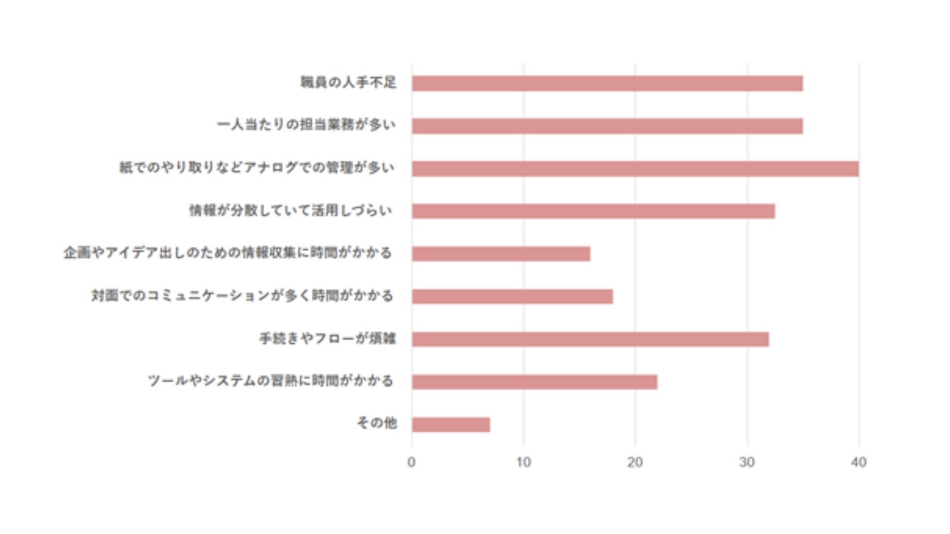 地方自治体職員が不便や大変に感じる業務第一位は「紙でのやりとりやアナログでの管理が多い」こと。