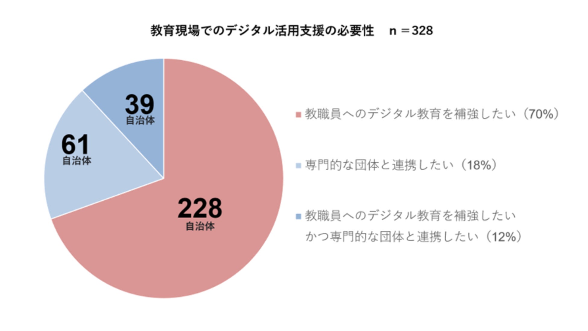 ・80%以上の自治体が教育現場でのデジタル活用支援が必要であると回答。