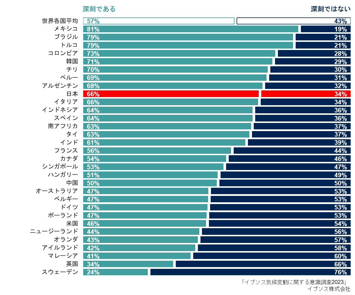 ⇒ 同設問に「深刻である」と答えた世界各国平均は57%。