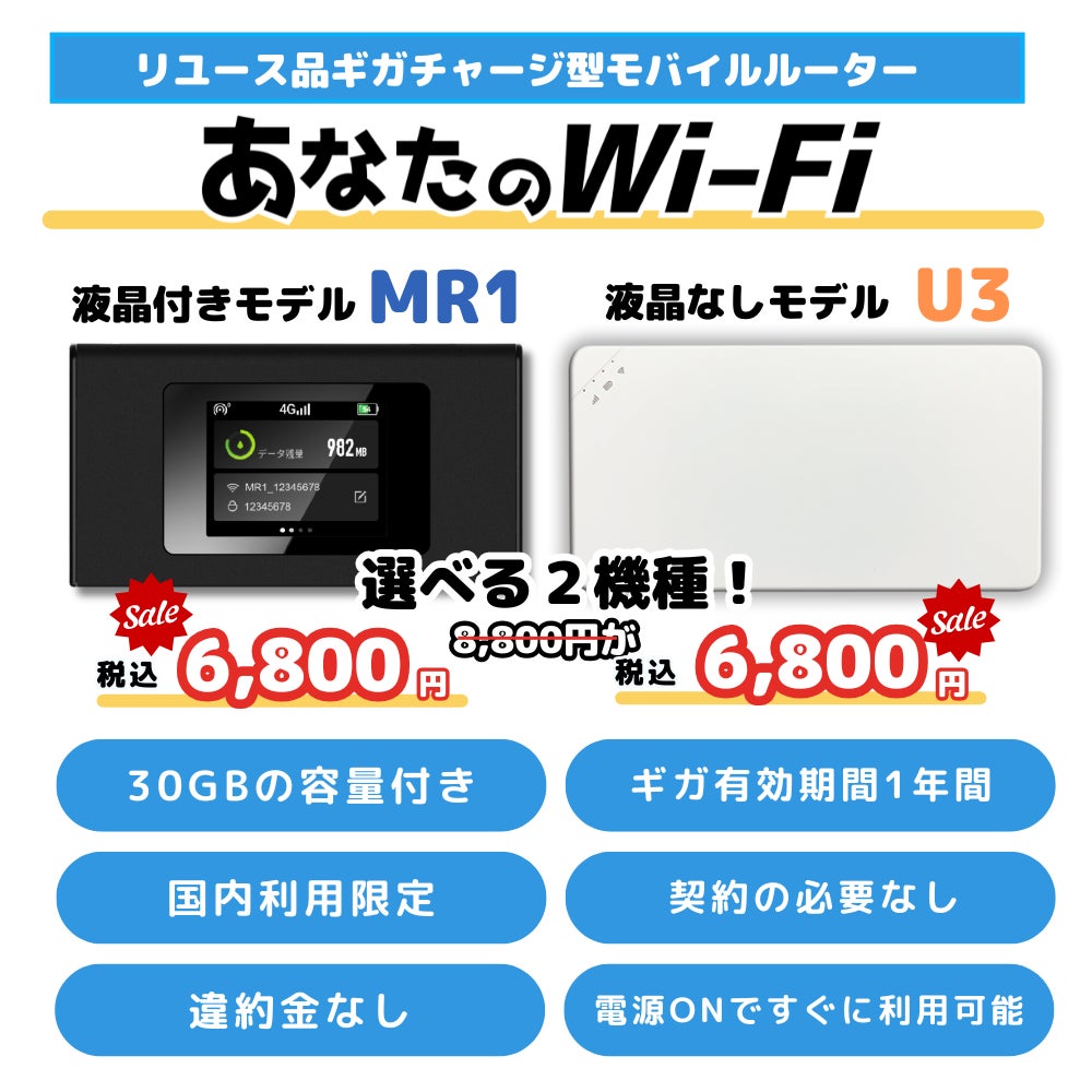 リユース品 ギガチャージ型 モバイルWi-Fiの30ギガセットを販売開始いたします。