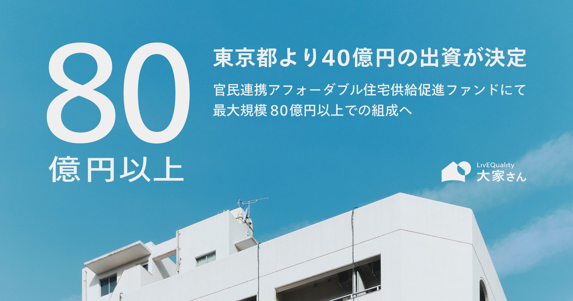 【東京都より40億円の出資が決定】官民連携アフォーダブル住宅供給促進ファンドにて最大規模80億円以上での組成へ
