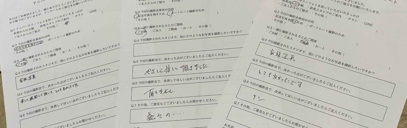 イベントの事後アンケートでは、「楽しく撮影して頂いて、とても良かったです。」、「やさしく接して頂きました」など、満足度の高いコメントをいただきました。