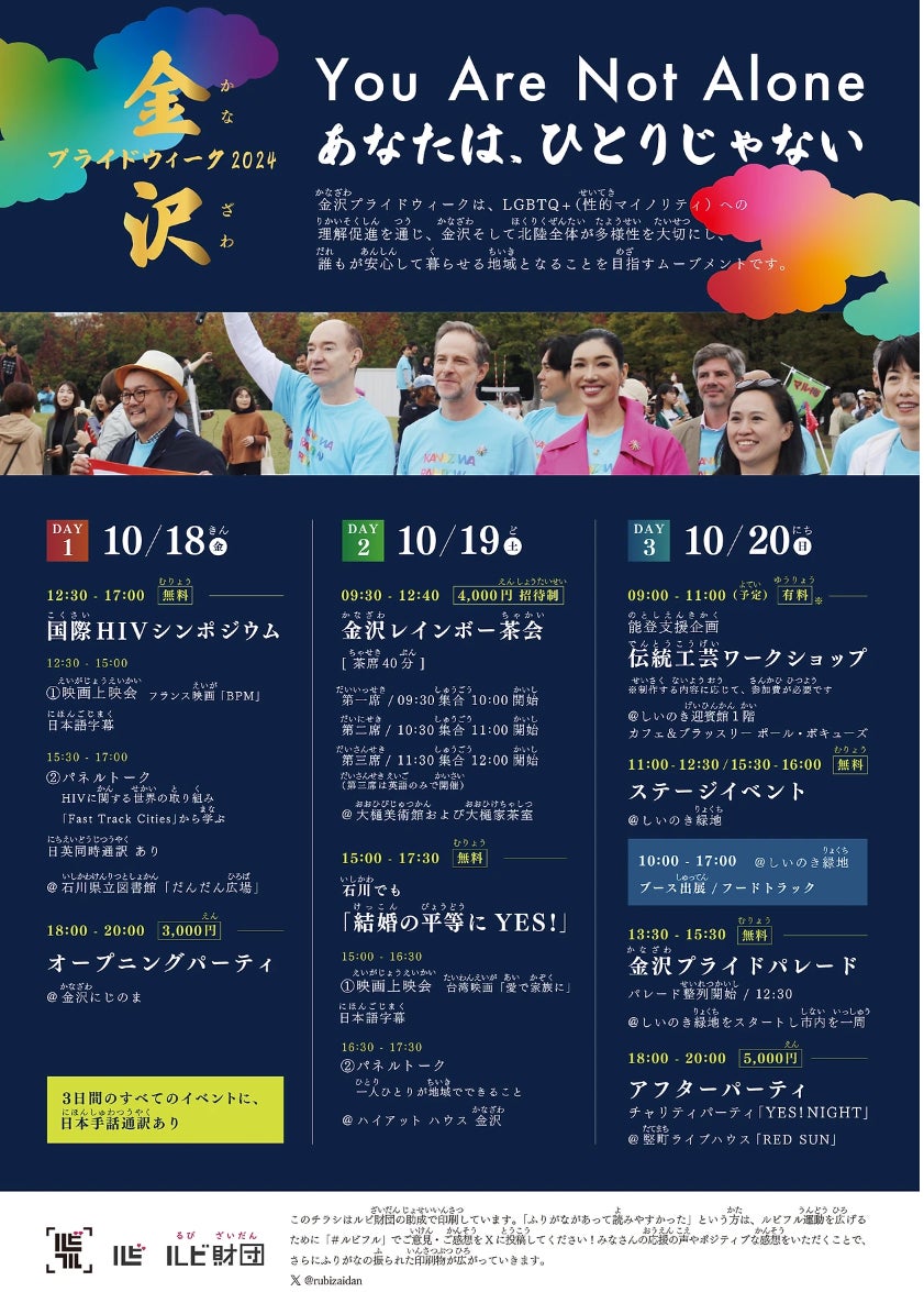 10/18-20に開催される金沢プライドウィーク2024(主催:一般社団法人金沢レインボープライド)