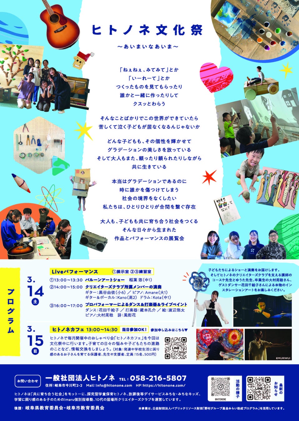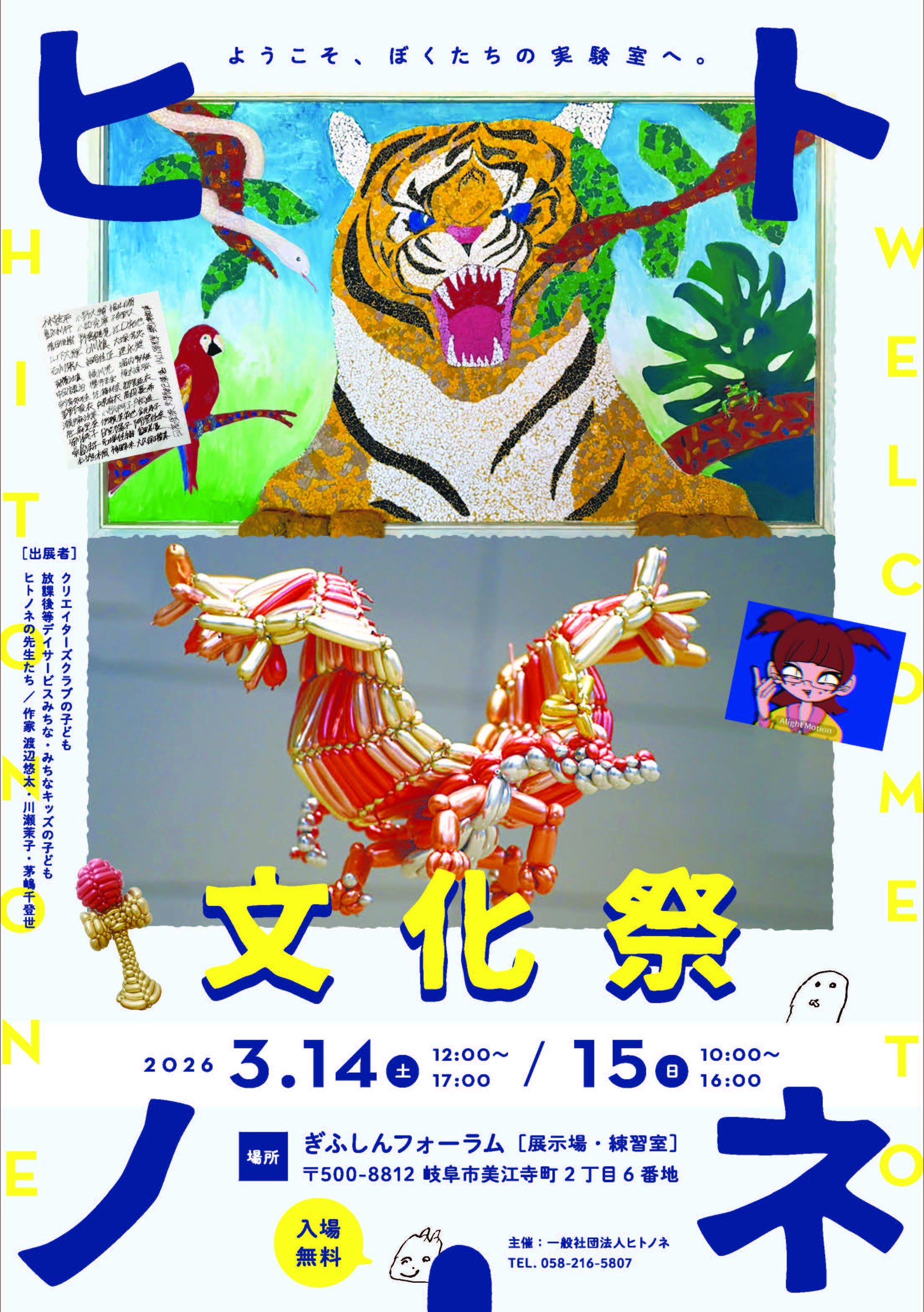 一般社団法人ヒトノネ(岐阜県岐阜市)は、子どもと大人がともに参加する表現イベント「ヒトノネ文化祭」を、2026年3月14日(土)・15日(日)の2日間、ぎふしんフォーラム(展示場・練習室)にて開催します。