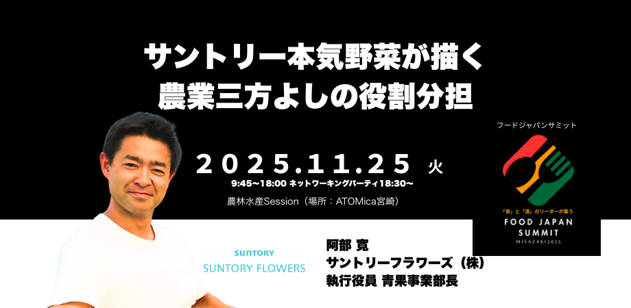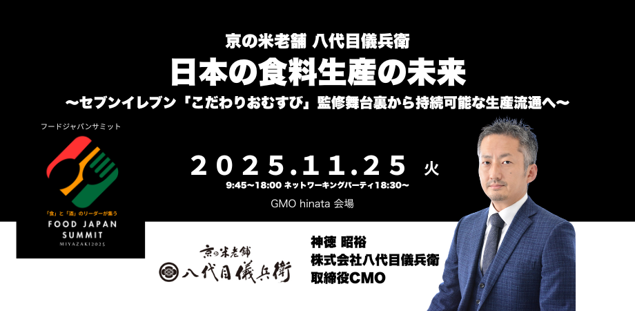 食と酒のリーダーたちが地方に集い、共創によって新たな産業モデルを生み出すことを目的としています。本サミットでは、「地域発ブランドの世界展開」「食の未来を支えるテクノロジーと人材」「関係人口づくり」など、日本の食産業を次のステージへと導く具体的なアクションが議論・発信されます。