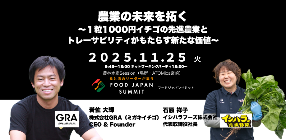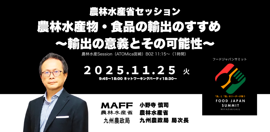 2025年11月25日(火)、宮崎市中心部にて「FOOD JAPAN SUMMIT 2025 in 宮崎」を開催します。